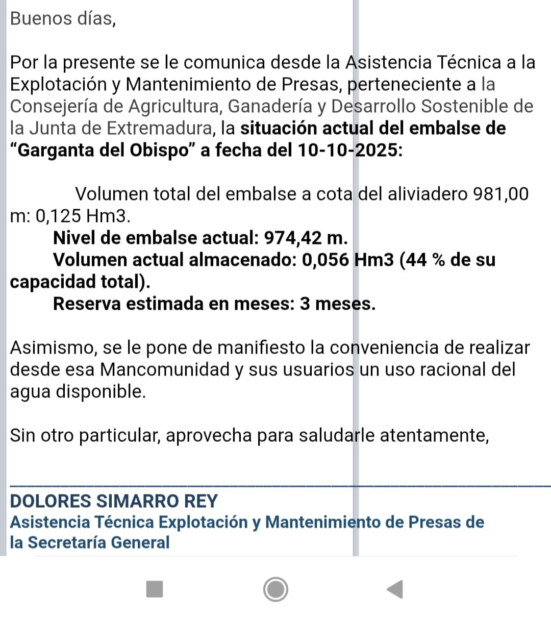 Se adjunta información recibida para información de la ciudadania en relación al consumo de agua.Se ruega un uso responsable de la misma.