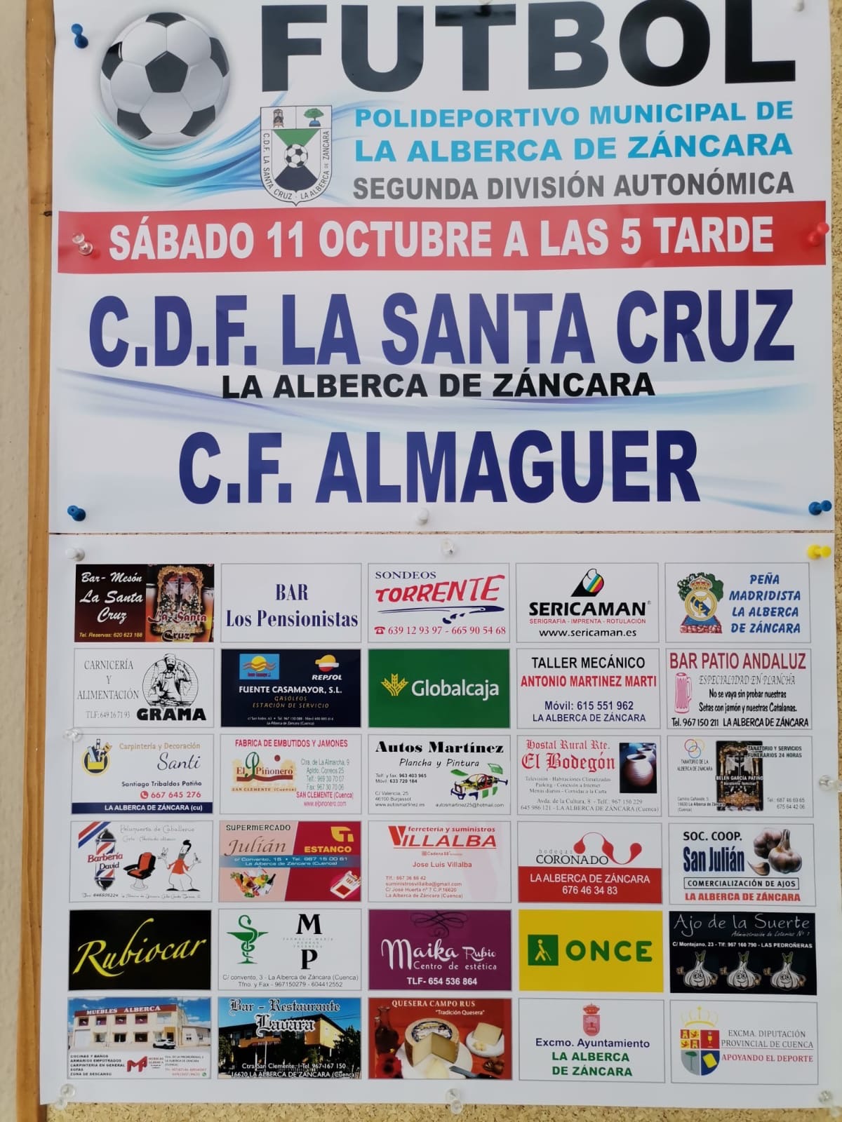 Esta tarde a las 5:00, no te pierdas el gran encuentro entre el C.D.F. La Santa Cruz 🆚 C.F. Almaguer en el Polideportivo Municipal de La Alberca de Záncara.