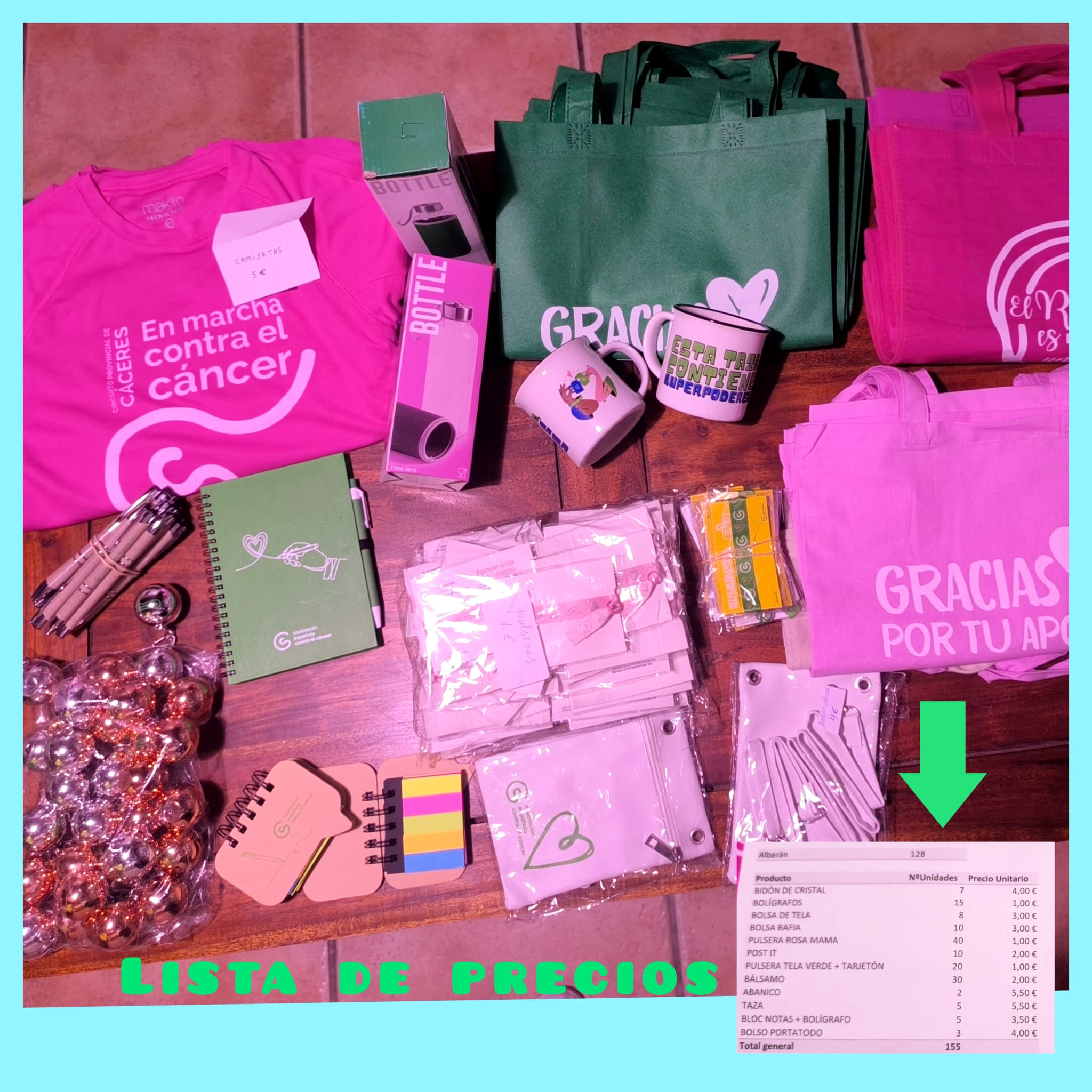 La Asociación Española Contra el Cáncer nos ha cedido camisetas y otros artículos para su venta. Los beneficios irán destinados íntegramente a su causa.