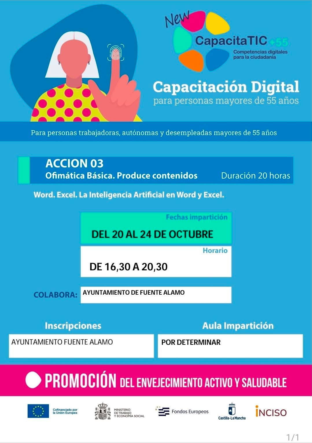 Curso de ofimática básica. Para mayores de 55 años (o tener 54 años y cumplir 55 en el presente año).