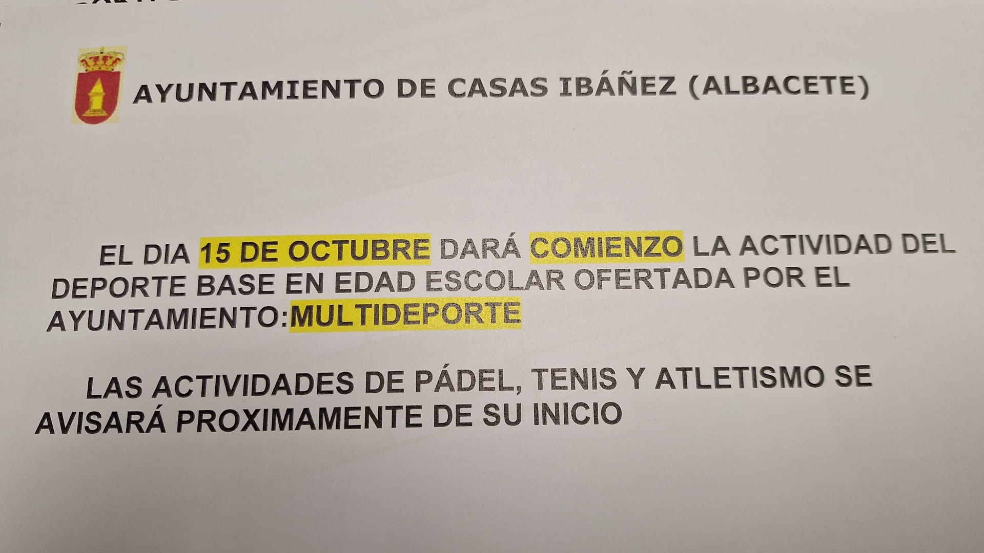 Se informa que mañana 15 de octubre darán comienzo las actividades de multideporte programadas por el Ayuntamiento.