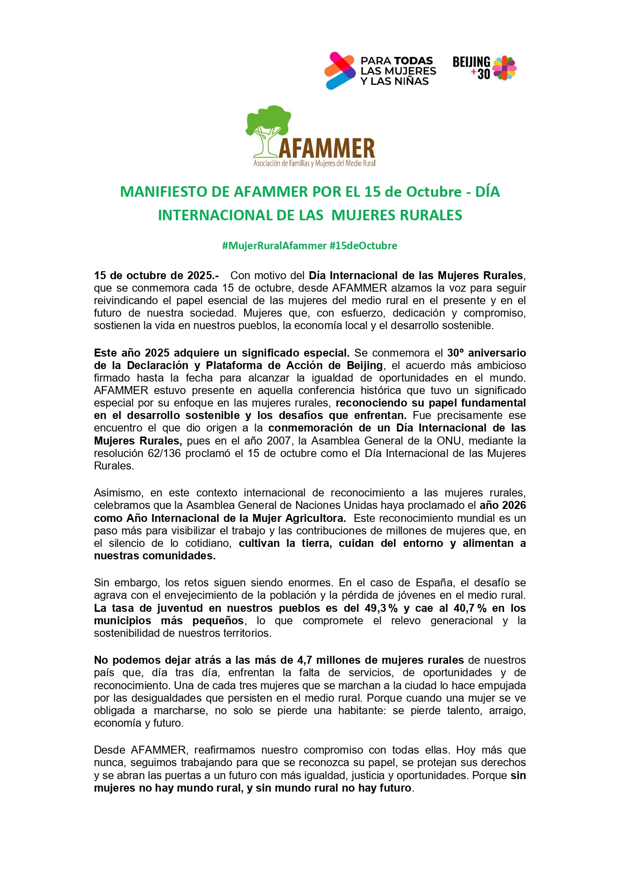 Cada 15 de Octubre conmemoramos el Día Internacional de la Mujer Rural para reivindicar el papel esencial de las mujeres del medio rural, reconociendo su valía fundamental en el desarrollo sostenible y los desafíos que enfrentan.