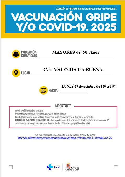 📢 Se informa a la ciudadanía de Valoria la Buena que se van a realizar las jornadas de vacunación antigripal y/o contra la COVID-19 en el Consultorio Local.