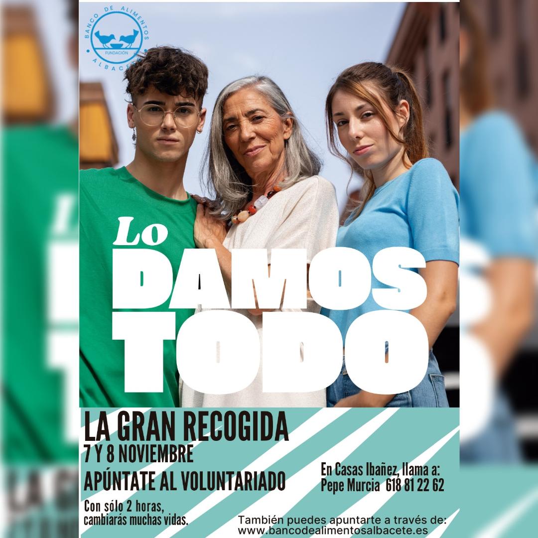 Desde la Fundación Banco de Alimentos de Albacete van a iniciar una campaña de recogida de alimentos próximamente y buscan voluntarios de Casas Ibáñez.En la imagen dispones de toda la información y donde dirigirte.