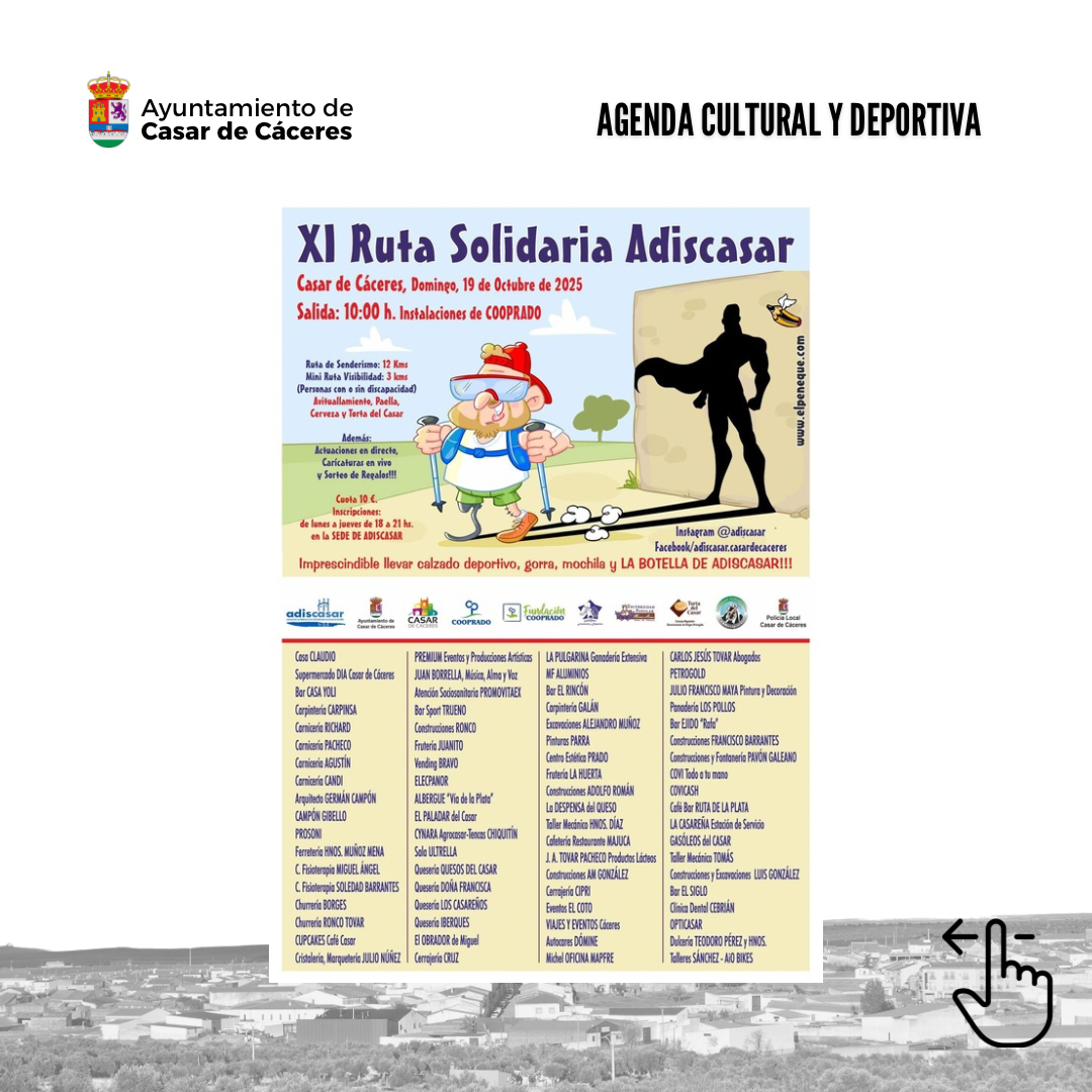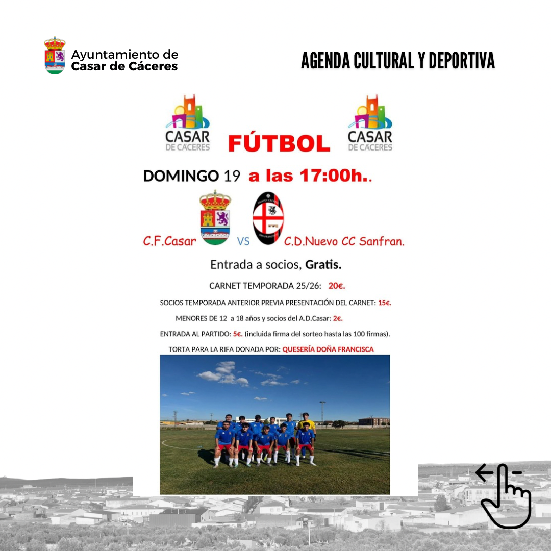 📢 Agenda Cultural y Deportiva Sumérgete un finde más en la actividad cultural y deportiva casareña 🎭⚽️🚶♂️➡️A disfrutar! 👏🏼👏🏼#casardecaceres