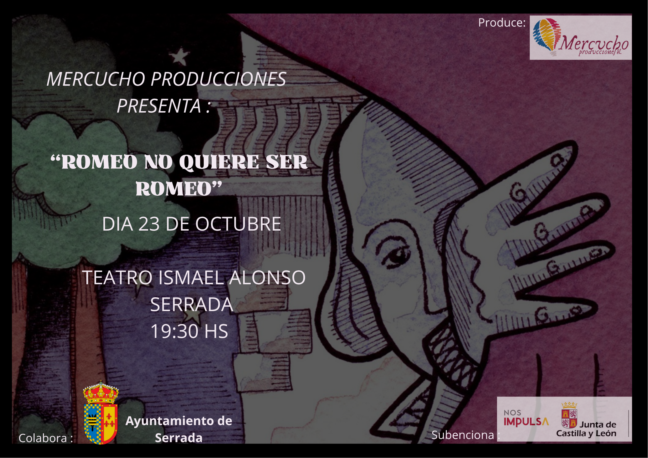 La Compañía de Teatro Mercucho, realizará un ensayo general a puertas abiertas en el Teatro Ismael Alonso con la obra "Romeo no quiere ser Romeo" el Jueves 23 de Octubre a las 19:30 h., invitando a todas aquellas personas que deseen asistir.