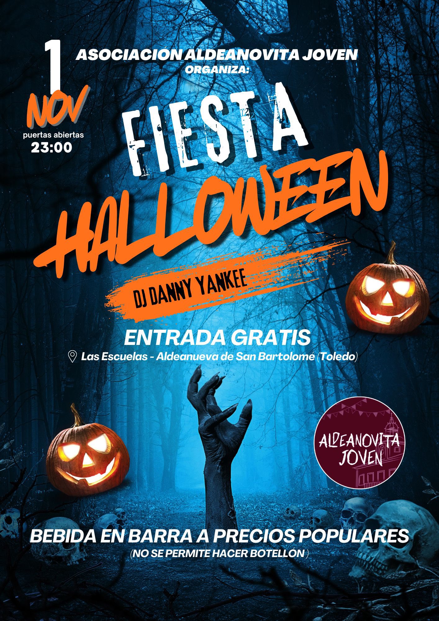 -23:00 horas, SALA MULTIUSOS -Fiesta Halloween con dj DANNY YANKEE //Entrada gratis// Bebida en barra a precios populares.