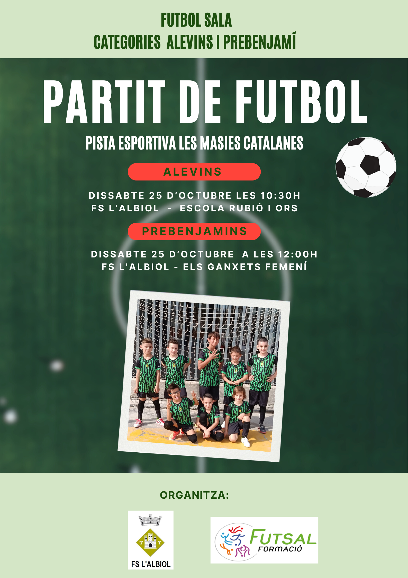 ⚽⚽⚽ L’Ajuntament de l’Albiol informa que, a partir d’aquest dissabte, 25 d’octubre, tornen els partits de futbol sala al municipi.