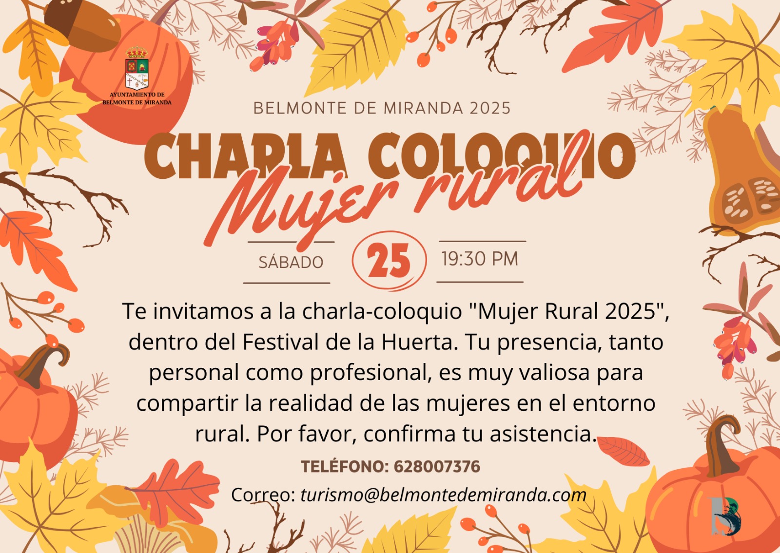 El próximo sábado día 25, te invitamos a la charla-coloquio "Mujer Rural 2025", que tendrá lugar en el marco de actividades del Festival de Otoño.