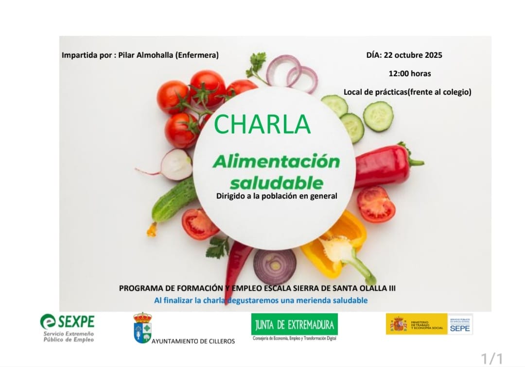 HOY MIÉRCOLES DÍA 22 DE OCTUBRE, HABRÁ UNA CHARLA SOBRE ALIMENTACIÓN SALUDABLE