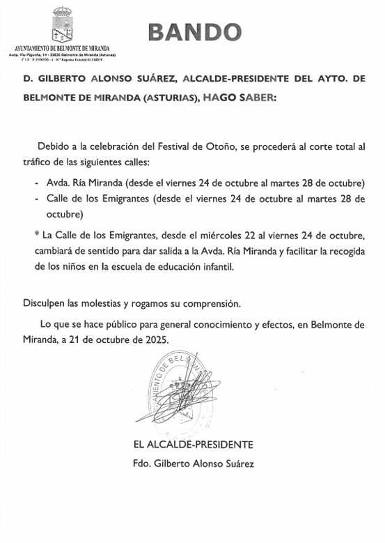 - Avda. Ría Miranda (desde el viernes 24 de octubre al martes 28 de octubre)