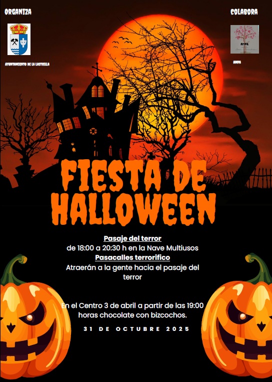 Llega la fecha más terrorífica del año... prepara tu disfraz y vente a pasártelo bien.Si el año pasado daba miedo el pasaje del terror este año muchas más sorpresas.Lo endulzaremos con un chocolate con bizcochos para todos.No te lo pierdas.