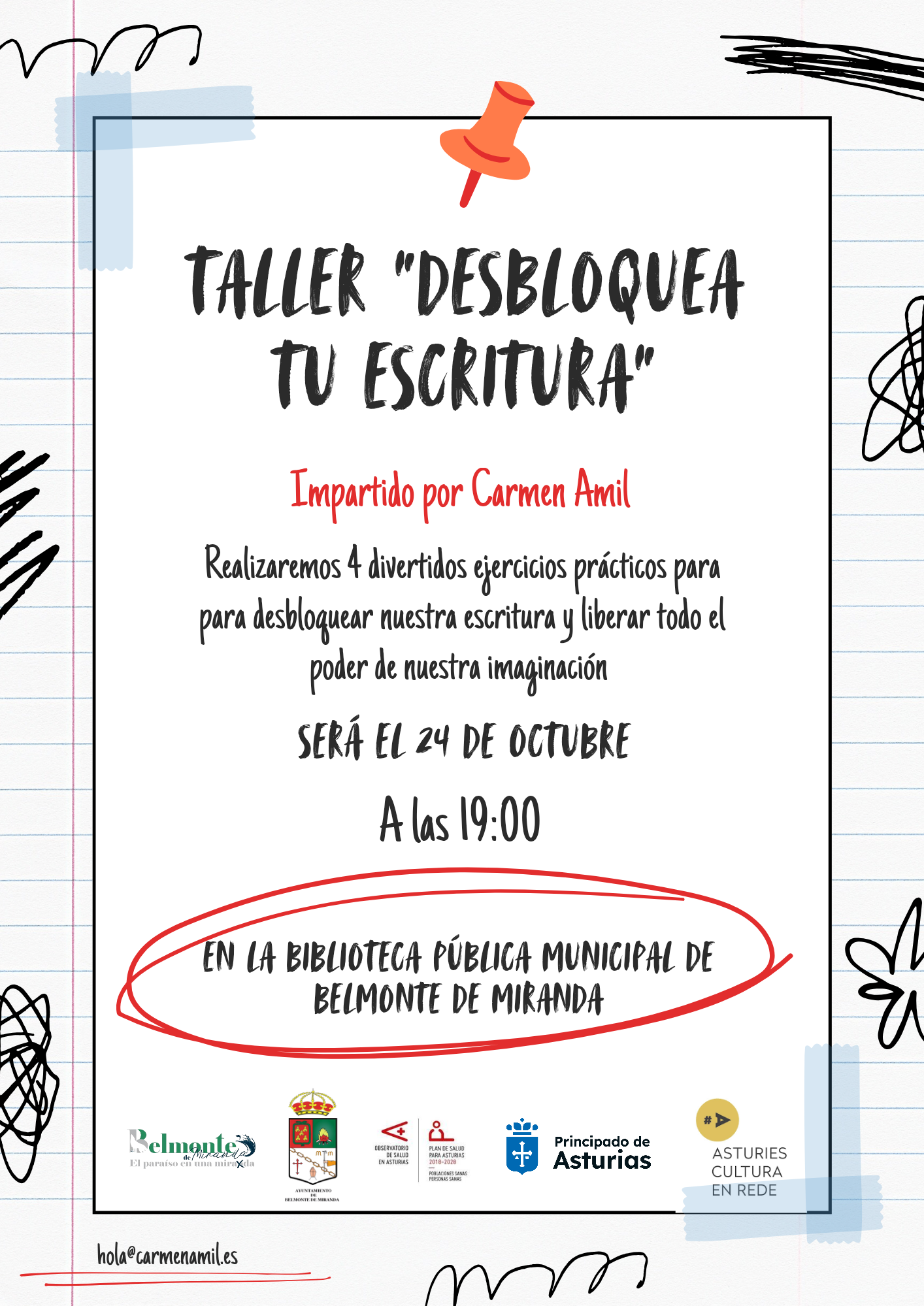 - Taller "desbloquea tu escritura" - 24 de octubre a las 19:00h