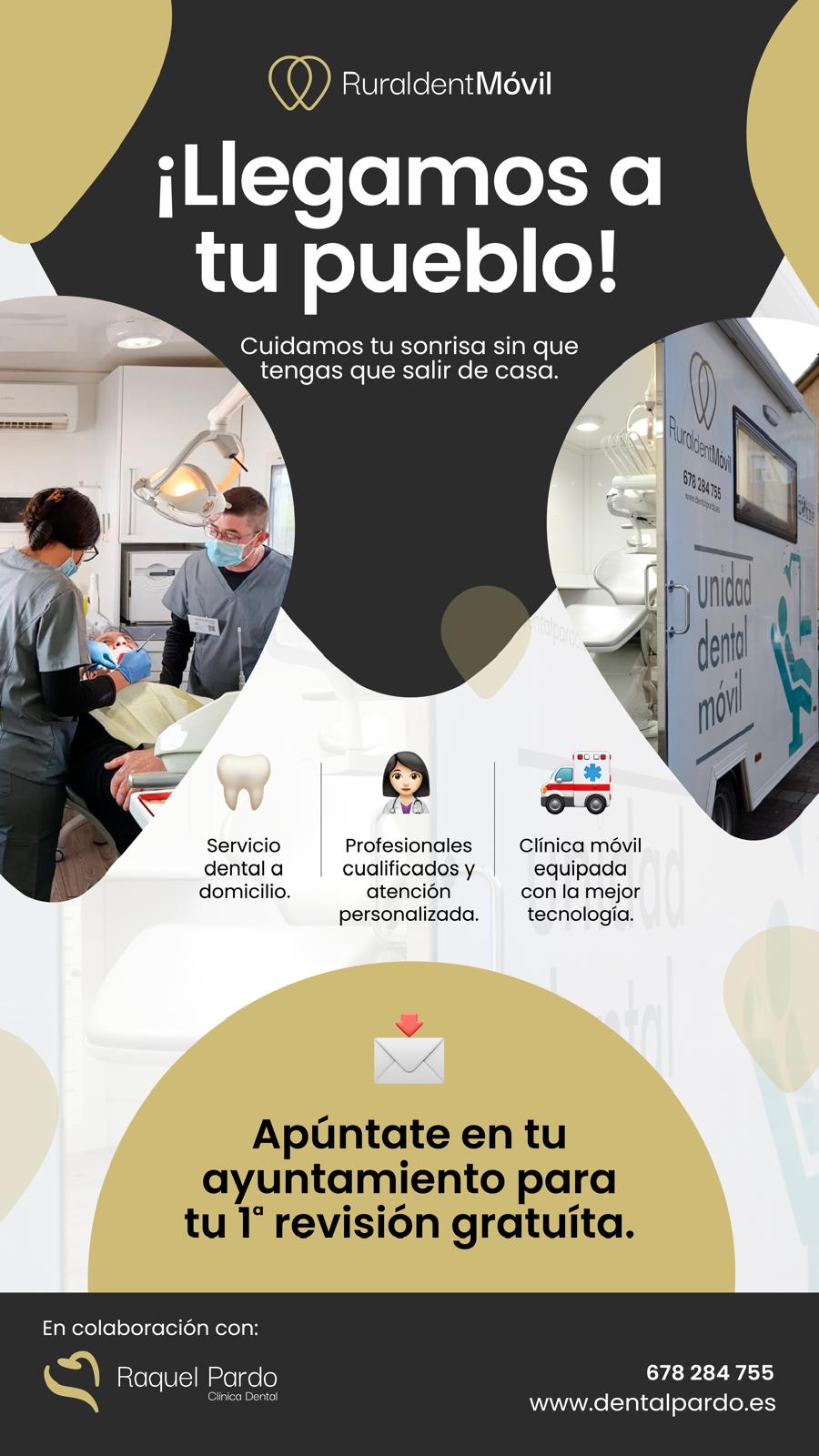 El próximo lunes 4 de noviembre, la clínica dental móvil Ruraldent visitará nuestro municipio para ofrecer servicios dentales sin necesidad de desplazarte.