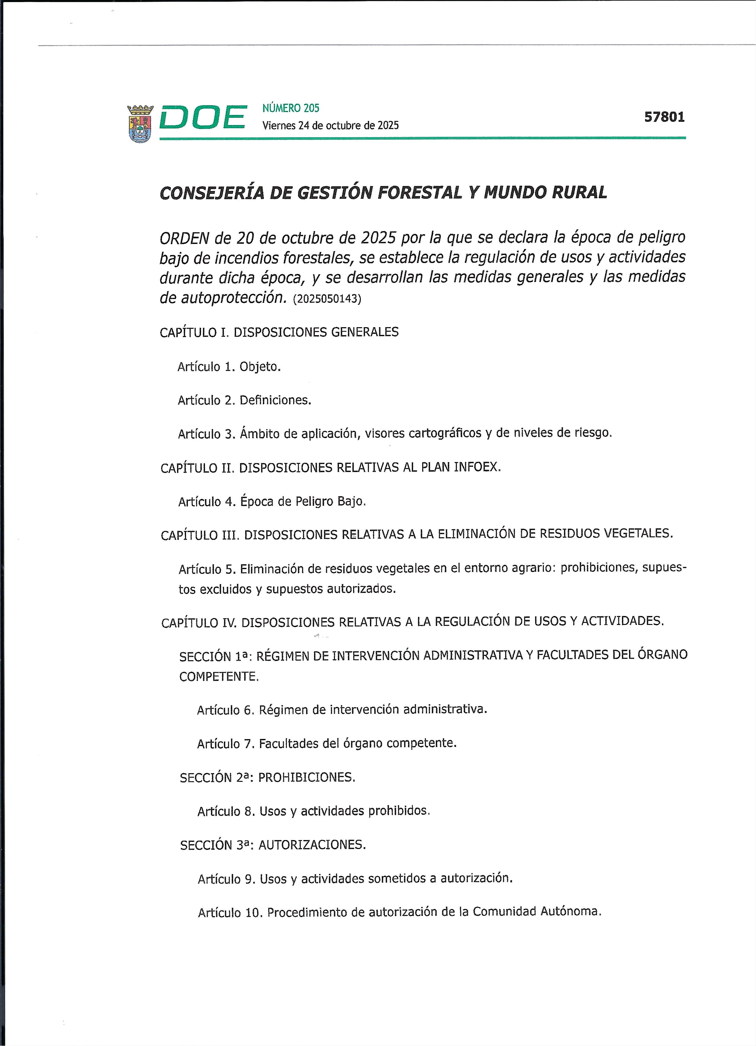 DECLARADO ÉPOCA DE PELIGRO BAJO DE INCENDIOS FORESTALES