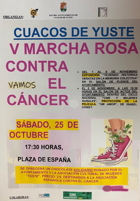 📢 Desde la Alcaldía de Cuacos de Yuste y la Concejalía de Igualdad se informa a la ciudadanía de las actividades organizadas con motivo del Mes Rosa.