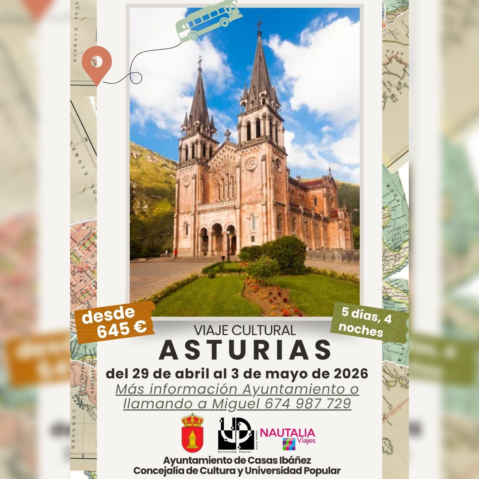 📌Desde la Concejalía de Cultura y Universidad Popular hemos preparado un viaje para el puente del Primero de Mayo, del 📆29 de abril al 3 de mayo.