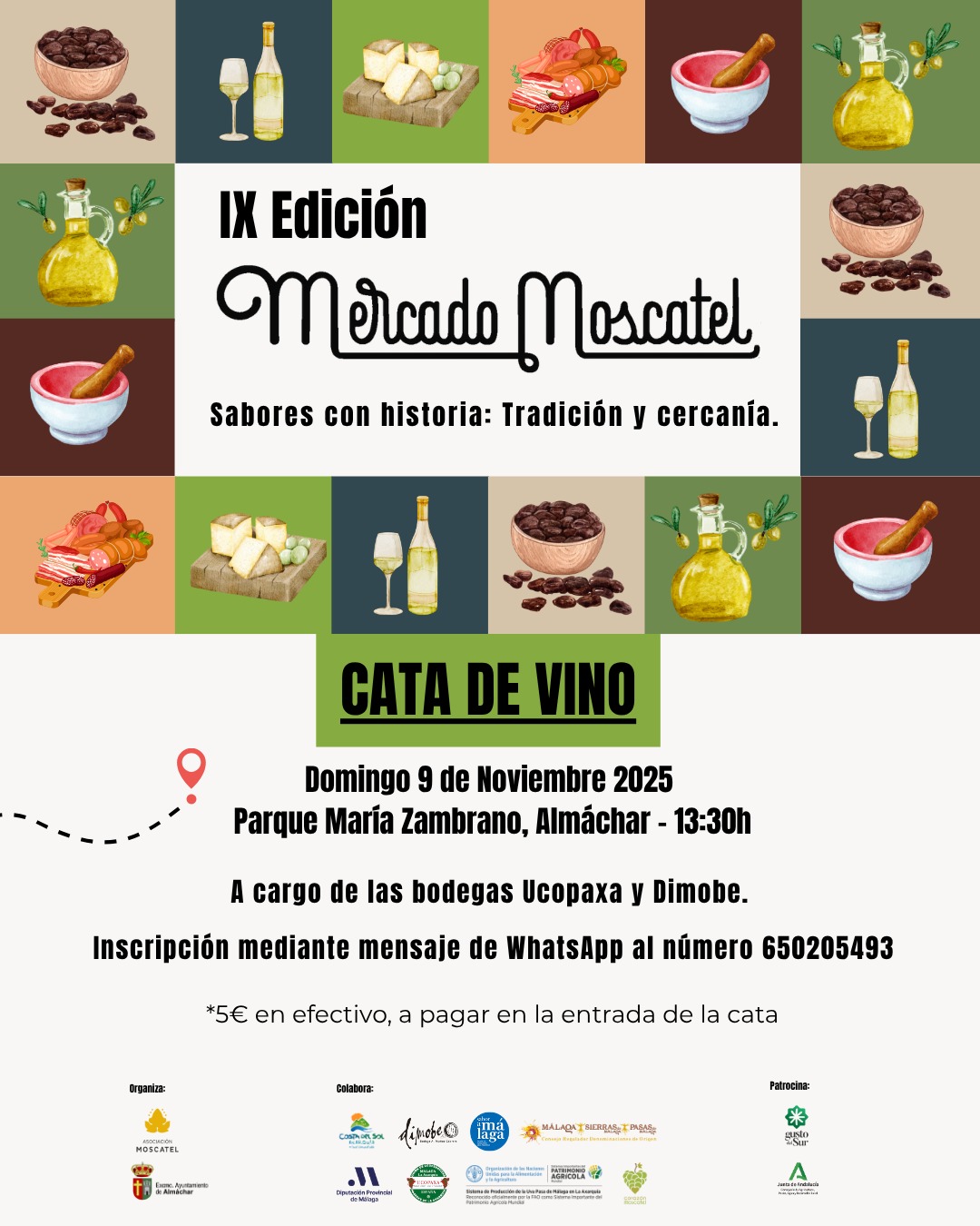 El próximo domingo 9 de noviembre de 2025, el Parque María Zambrano de Almáchar se llenará de aromas, sabores y buena compañía con una cita muy especial: la CATA DE VINO del Mercado Moscatel.