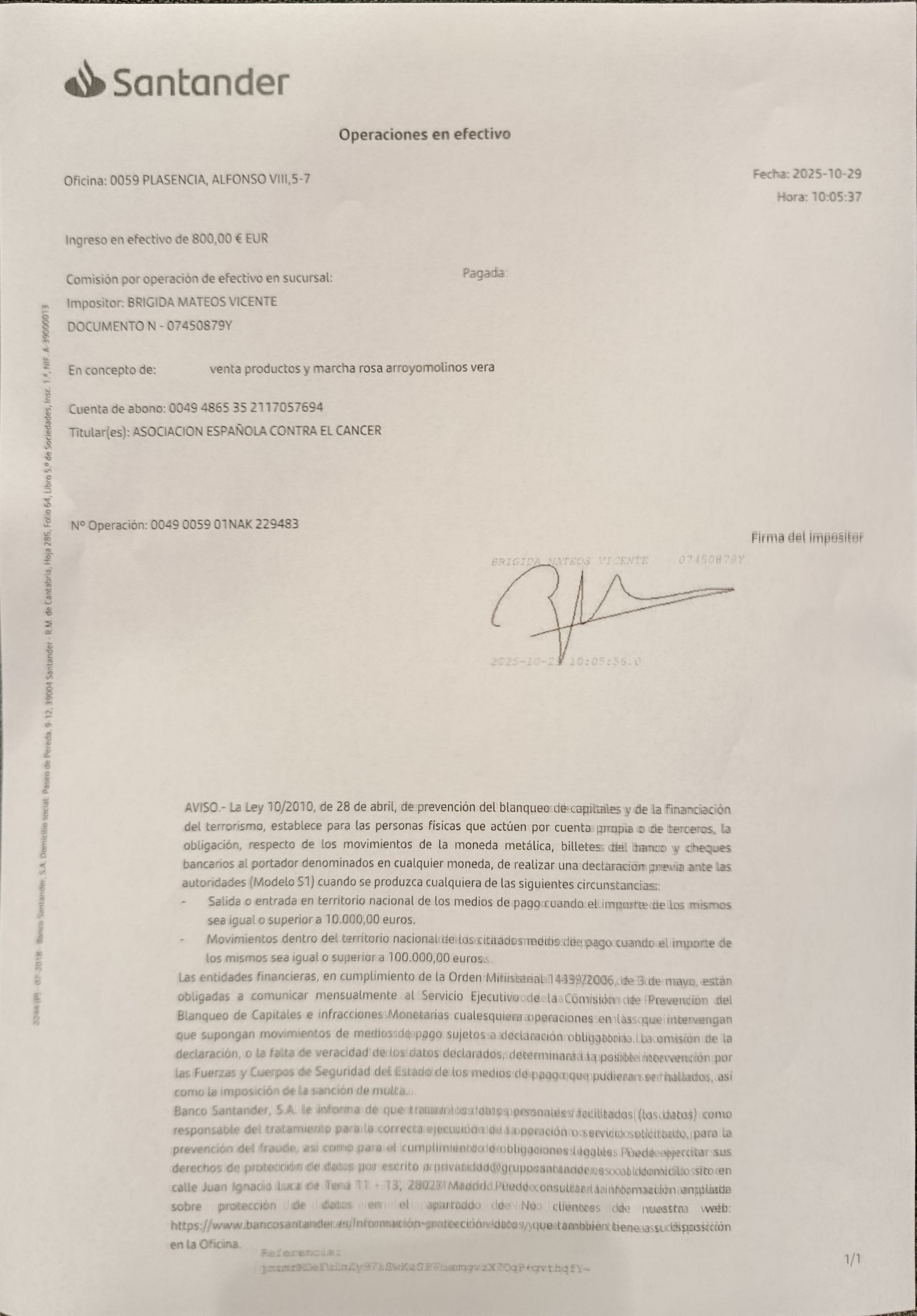 Se informa que de la venta de camisetas y otros productos más el chocolate solidario se han recaudado 800 € para la asociación española contra el cáncer.