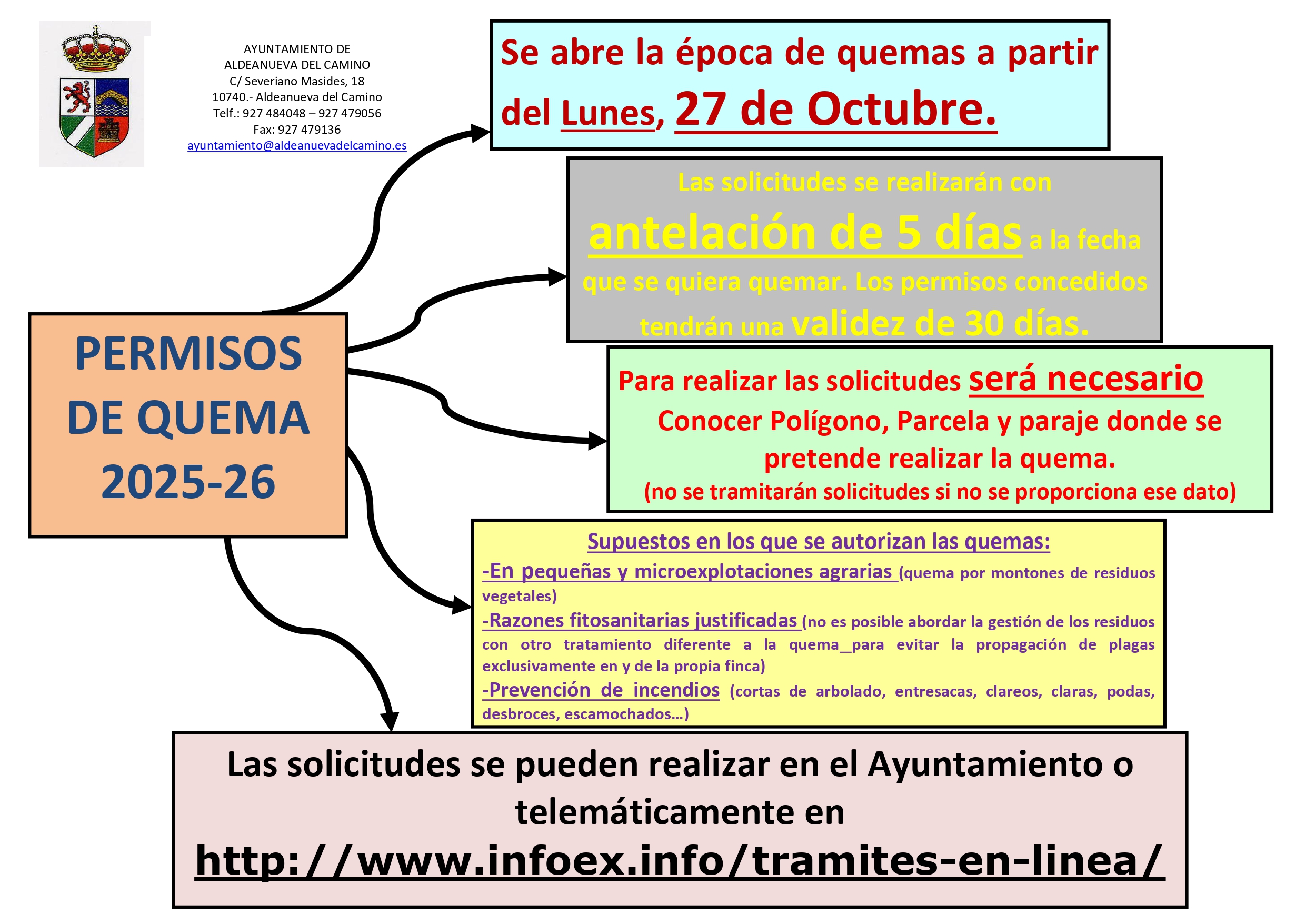 En cartelería adjunta se informa sobre los permisos de quema en época de peligro bajo de incencios.
