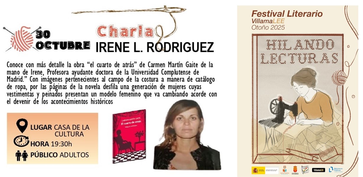 Cerramos el festival de este año con una interesante charla de la mano de IRENE L. RODRÍGUEZ, profesora  de la Universidad Complutense de Madrid, sobre las claves literarias de Carmen Martín Gaite.