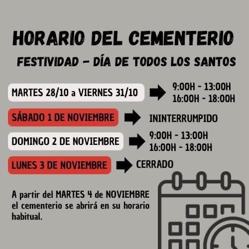 ℹ️ Informamos sobre el horario del cementerio que tendrá por la festividad del día de todos los santos.#casardecaceres