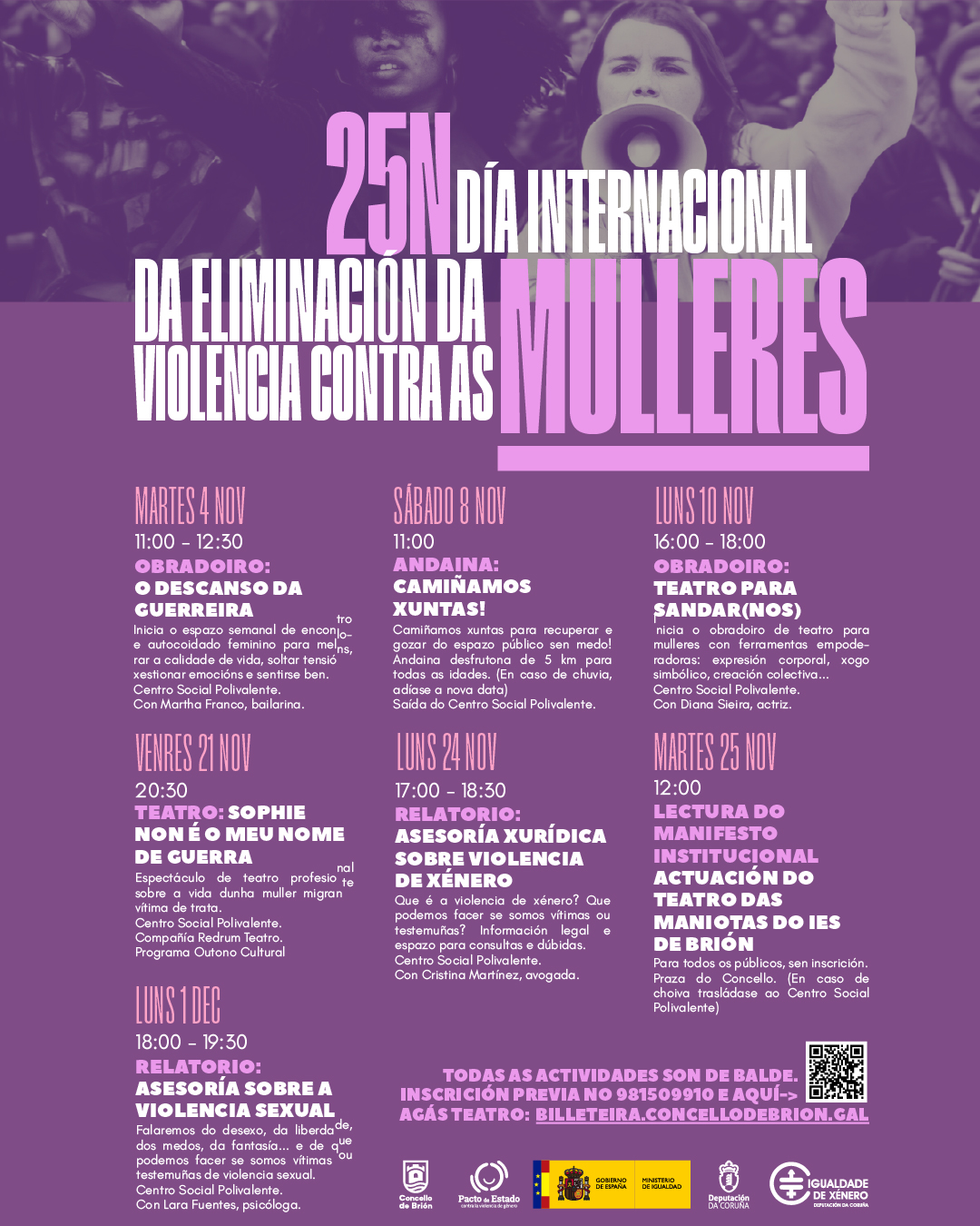 O Concello de Brión presenta o seu programa de actividades arredor do 25 de novembro, centrado en dous obxectivos principais: