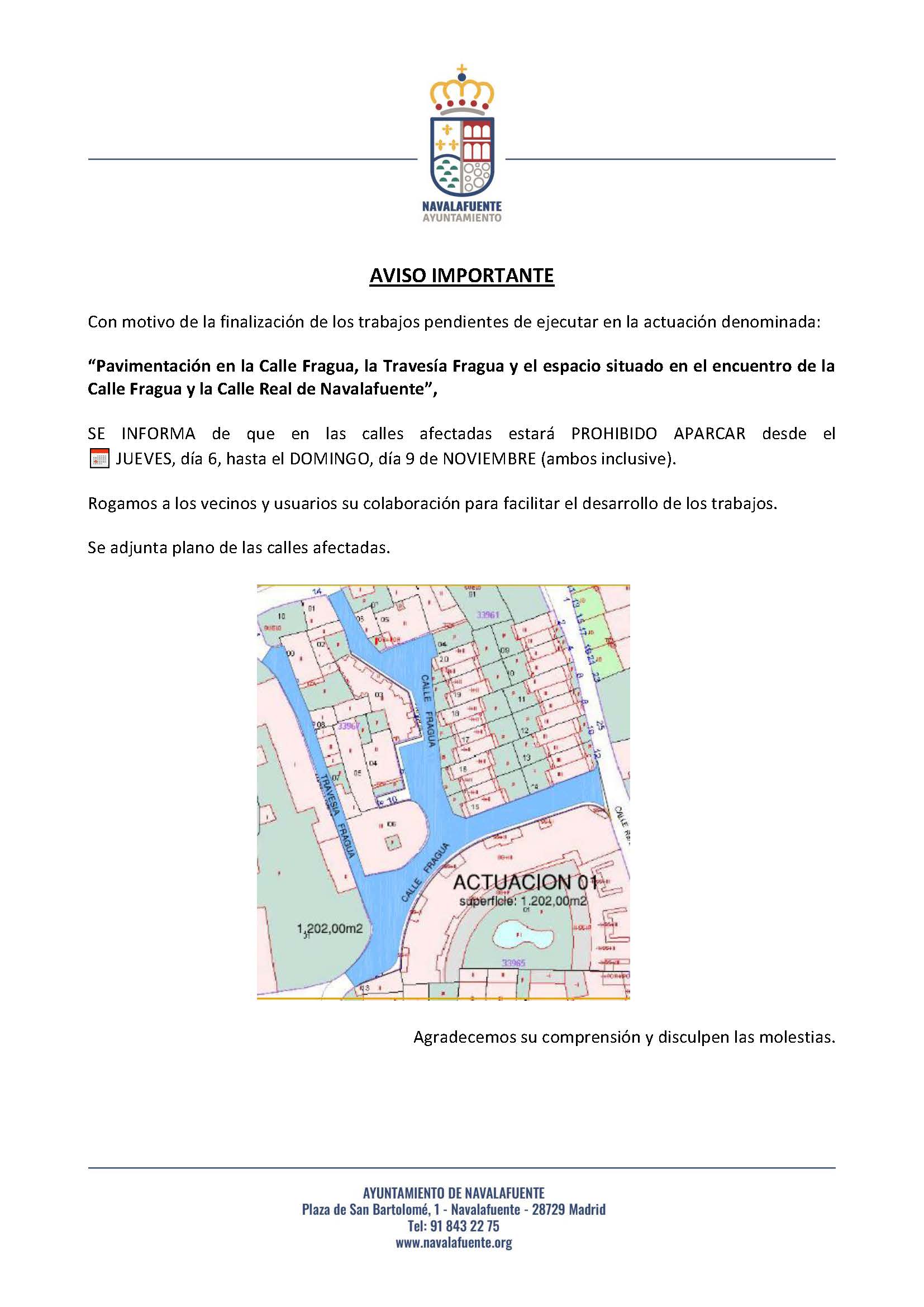 “Pavimentación en la Calle Fragua, la Travesía Fragua y el espacio situado en el encuentro de la Calle Fragua y la Calle Real de Navalafuente”,