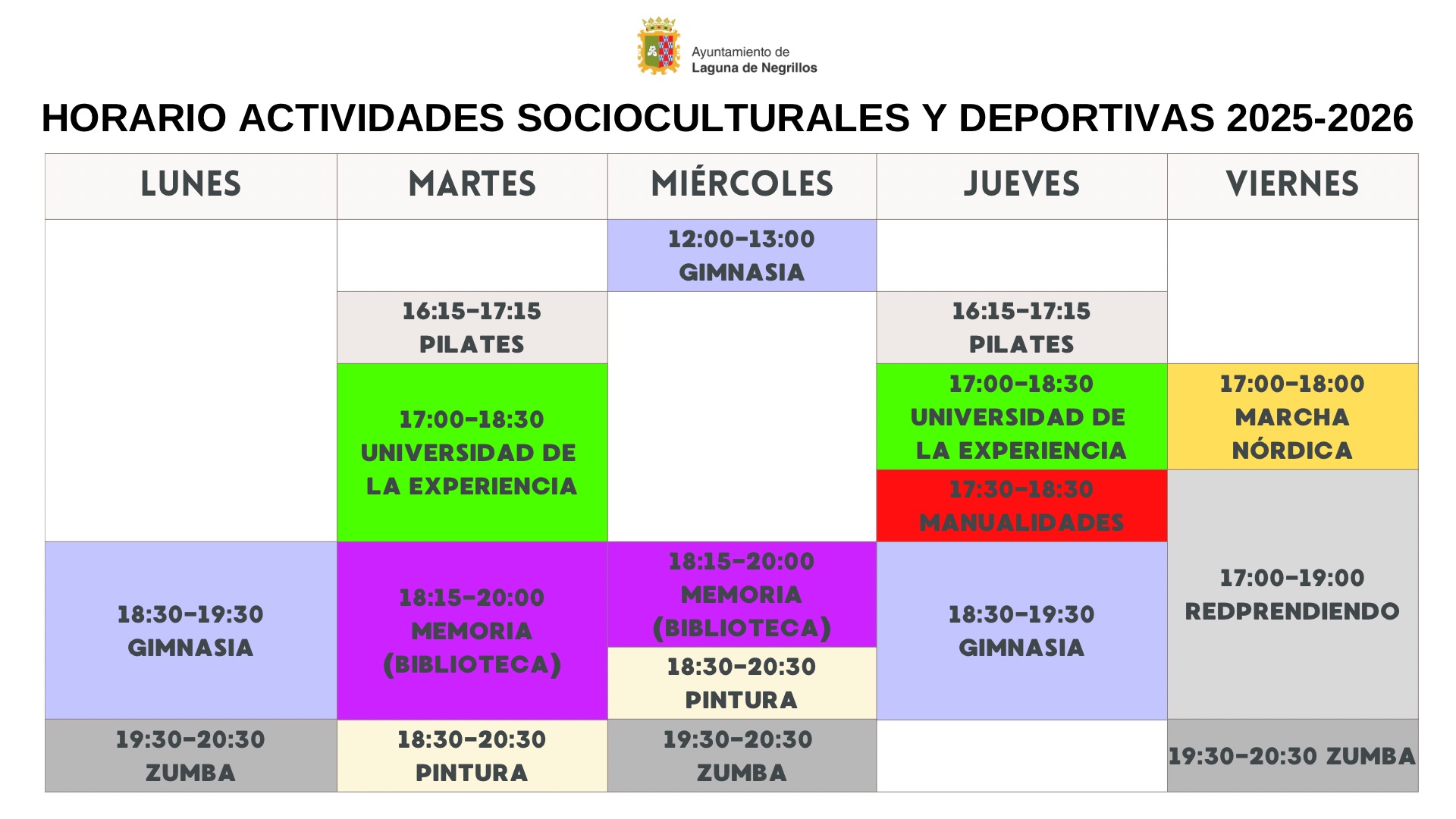 Actualización de horarios de las actividades socioculturales y deportivas de la temporada.