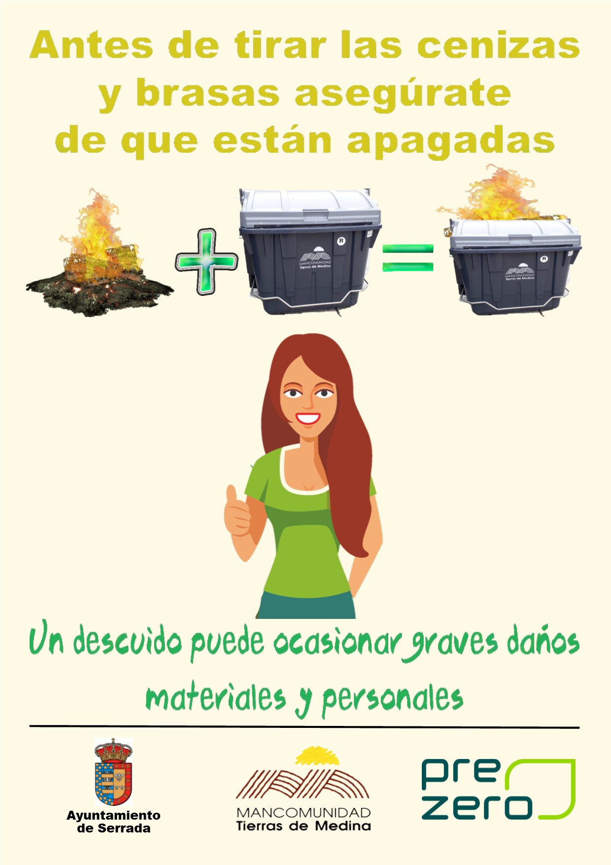 En espera del pr贸ximo fr铆o invernal, informamos de la continuidad de la Campa帽a de Concienciaci贸n en los Municipios de la Mancomunidad Tierras de Medina, para evitar los incendios que se vienen sucediendo de contenedores de RSU y con el fin de garantizar la seguridad de los bienes y usuarios de la v铆a p煤blica, as铆 como de preservar el mobiliario urbano que tan alto coste econ贸mico supone.