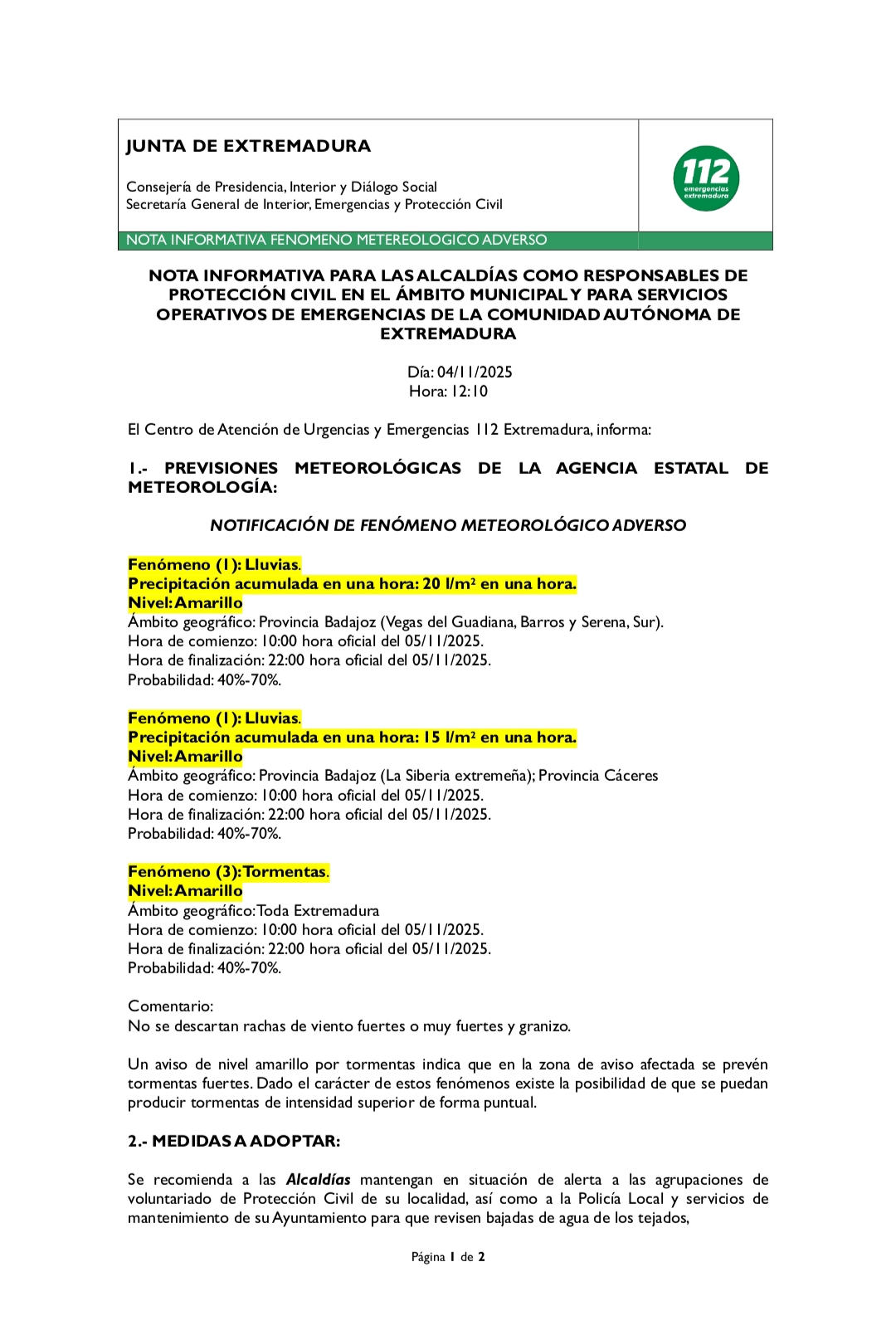 📢🚨 AVISO IMPORTANTE DEL 112 EXTREMADURA 🚨📢