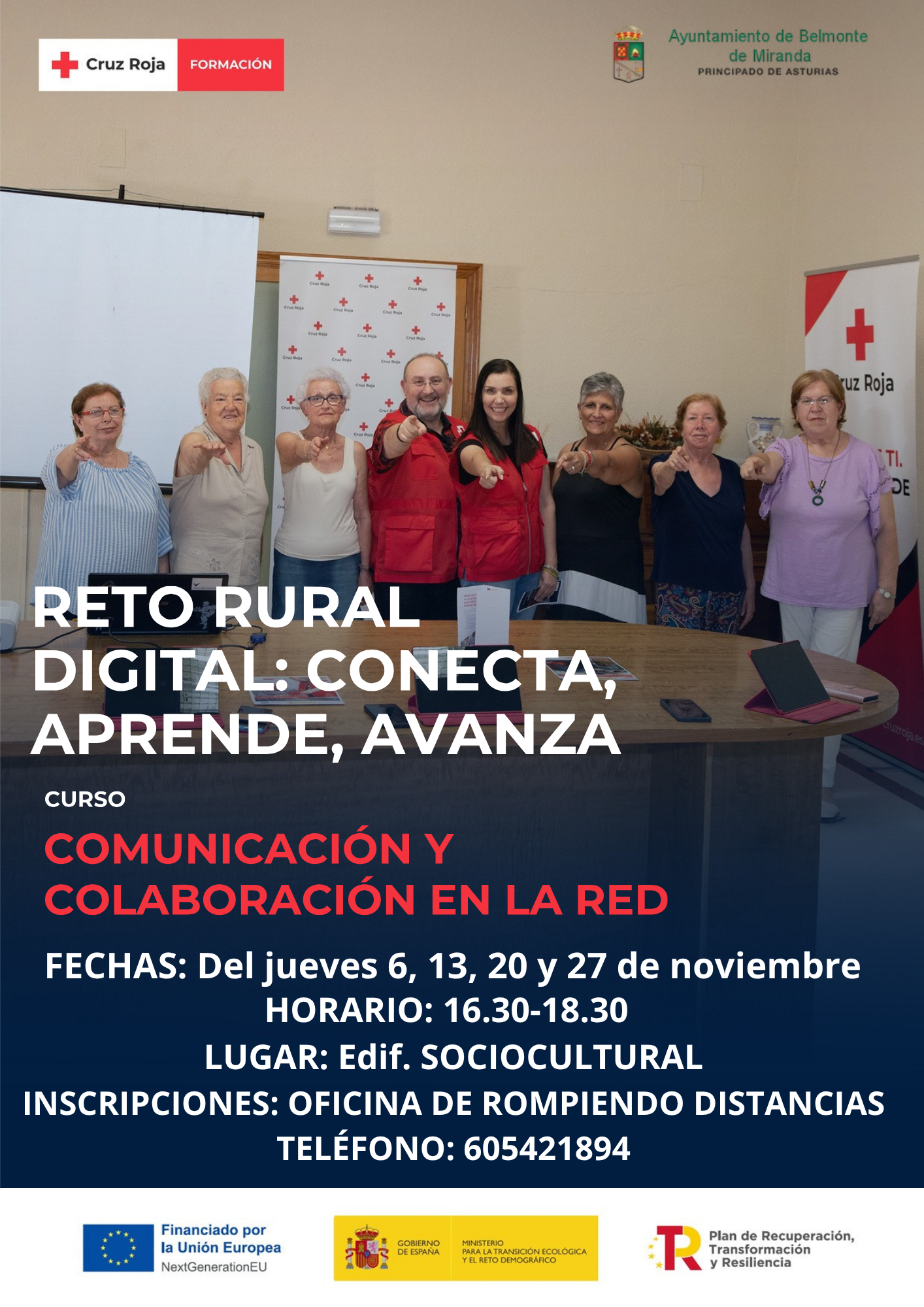 📢 El Ayuntamiento informa de la celebración del curso "Comunicación y colaboración en la red", dentro del programa Reto Rural Digital: Conecta, Aprende, Avanza. El curso ofrece formación práctica para manejar herramientas digitales de forma segura y útil, fomentando la conexión con el entorno local.
