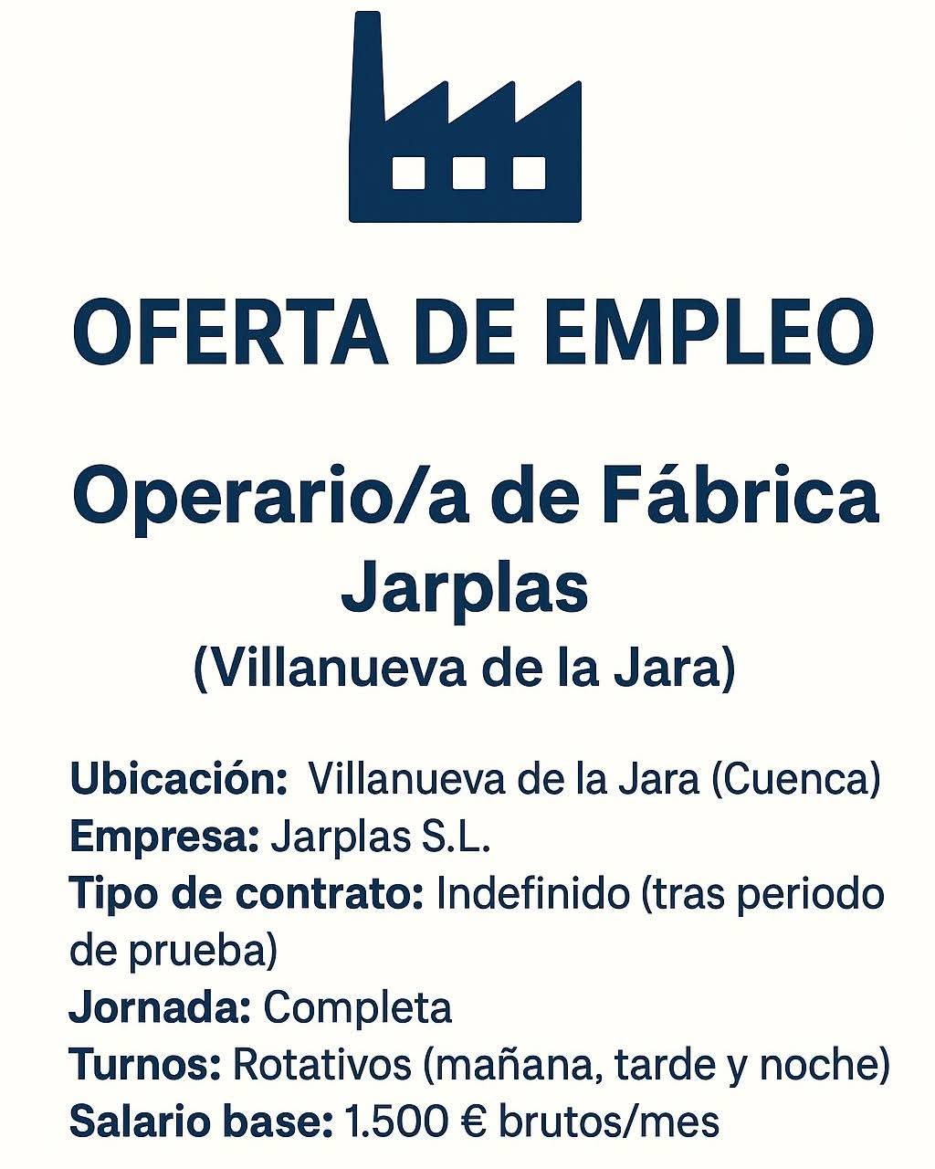 La empresa jareña JARPLAS busca operario/a de fábrica.