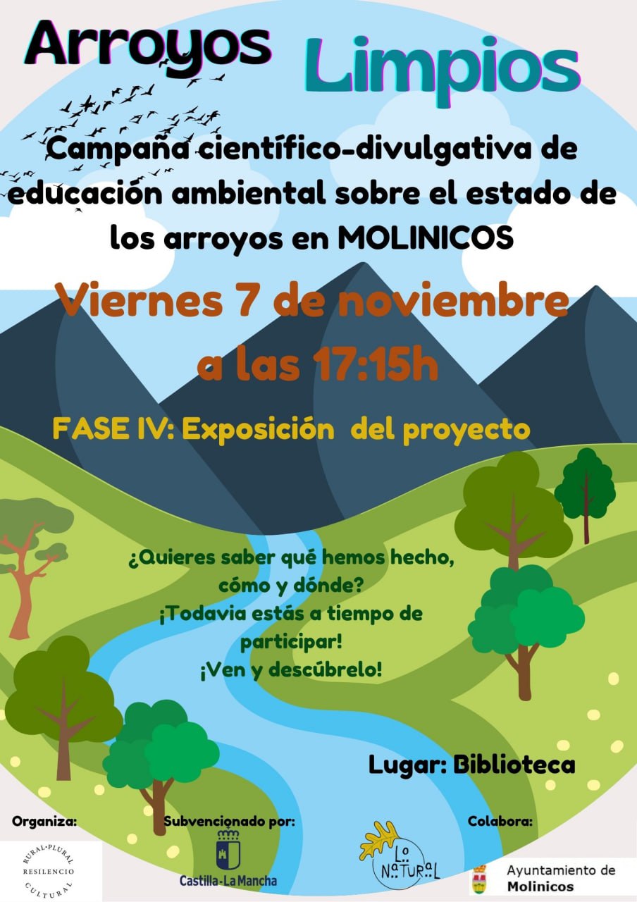 Este viernes día 7 de noviembre realizaremos la clausura del proyecto "Arroyos Limpios", subvencionado por la Junta de Castilla la Mancha, impulsado por Resilencio y con la colaboración del Ayuntamiento de Molinicos y Lo Natural.