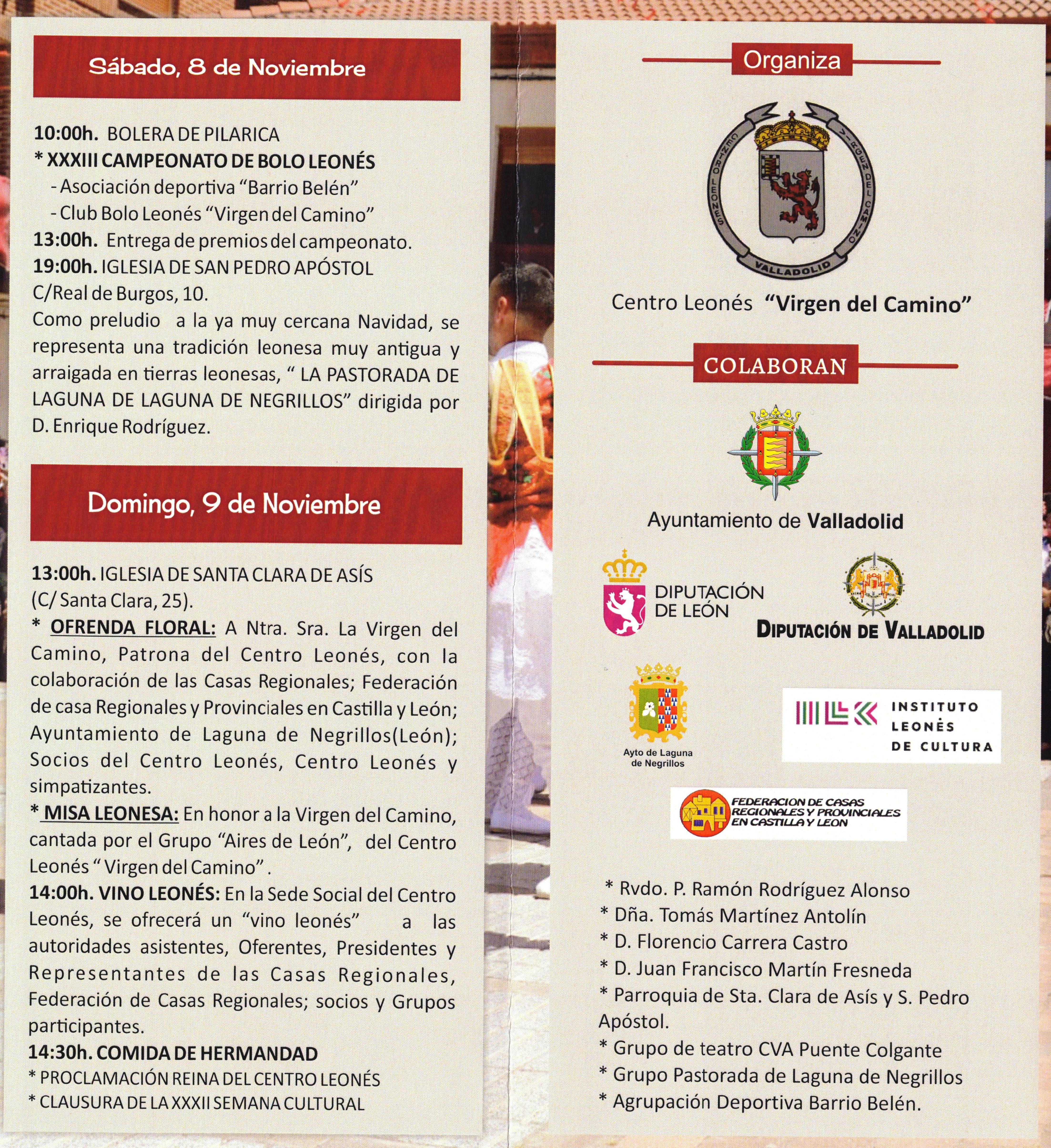 Para finalizar; el sábado 8 a las 19:00 h. en la Iglesia de San Pedro Apóstol de Valladolid tendrá lugar una representación tradicional muy leonesa como lo es “La Pastorada” interpretada por un grupo de vecinos de nuestro pueblo que lleva ensayando desde el mes de mayo para recuperar este auto sacramental tan tradicional en la Misa del Gallo de nuestra localidad.