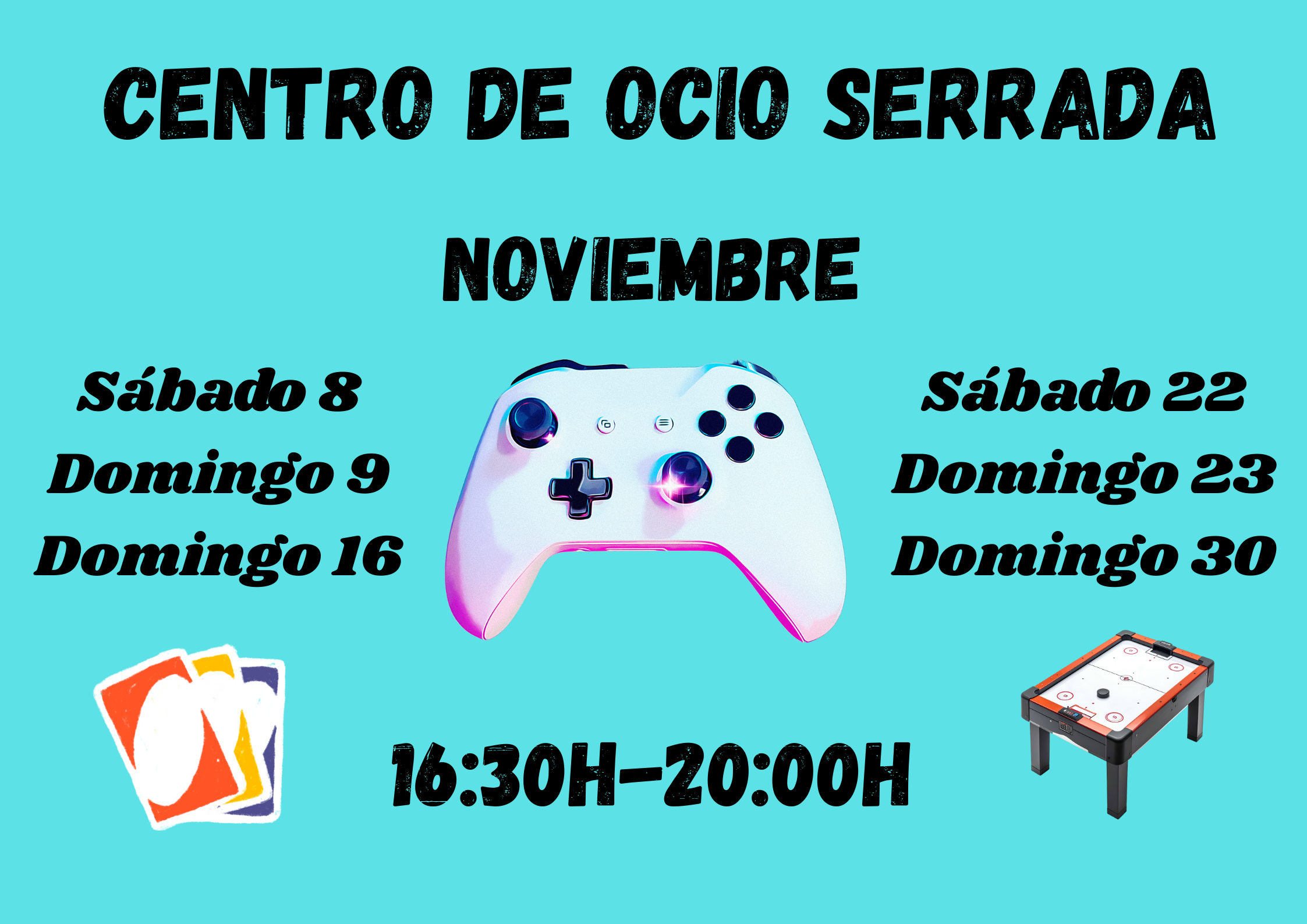 A partir del 8 de noviembre volverá abrir sus puertas el centro de ocio desde las 16.30 h a las 20.00 h. Podrán visitarnos los jóvenes a partir de los 10 años. ¡OS ESPERAMOS!.