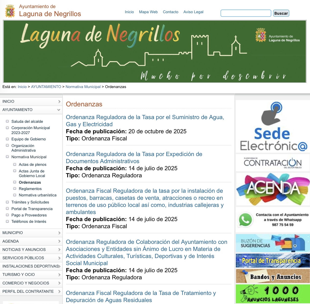 La misma ya ha sido publicada en el B.O.P. y puede ser leída en la web oficial del Ayuntamiento, https://www.aytolagunadenegrillos.es/ayuntamiento/normativa-municipal/ordenanzas/