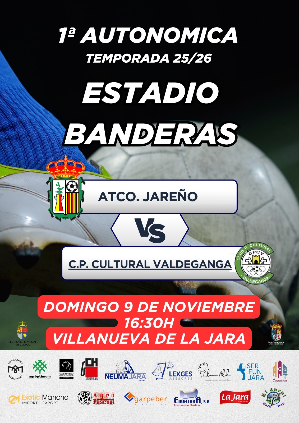 Este domingo 9 de noviembre, a las 16:30 h, el Atlético Jareño juega en el Estadio Banderas de Villanueva de la Jara frente al equipo de Valdeganga.