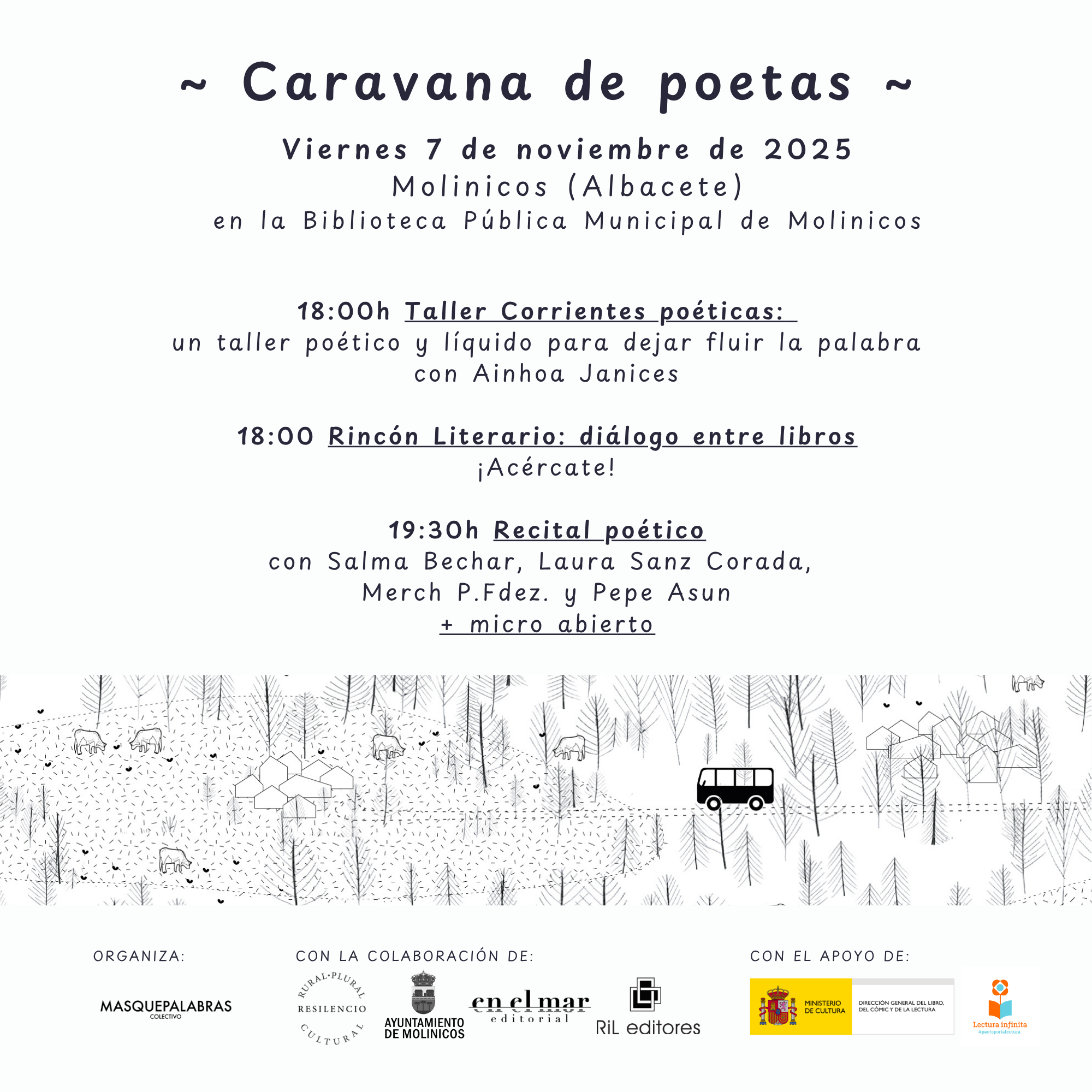 Esta tarde, 7 de noviembre en la Biblioteca Municipal , Caravana de poetas, del Colectivo Masquepalabras, desarrolla encuentros culturales participativos y diversos alrededor de la palabra y el libro. Una experiencia literaria única, diversa e intergeneracional.
