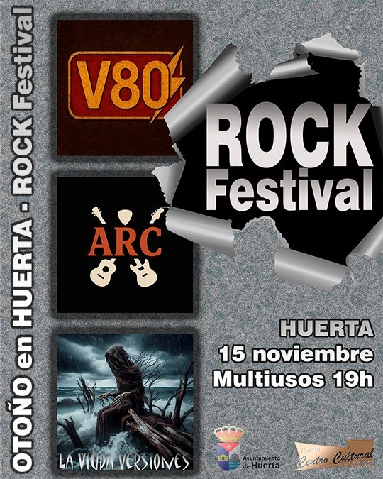 🎸 Festival de Rock en Huerta 🎸📆 15 de noviembre a las 19h 📍 En el Centro Cultural (Multiusos)➡️ Mayores de 14 años.