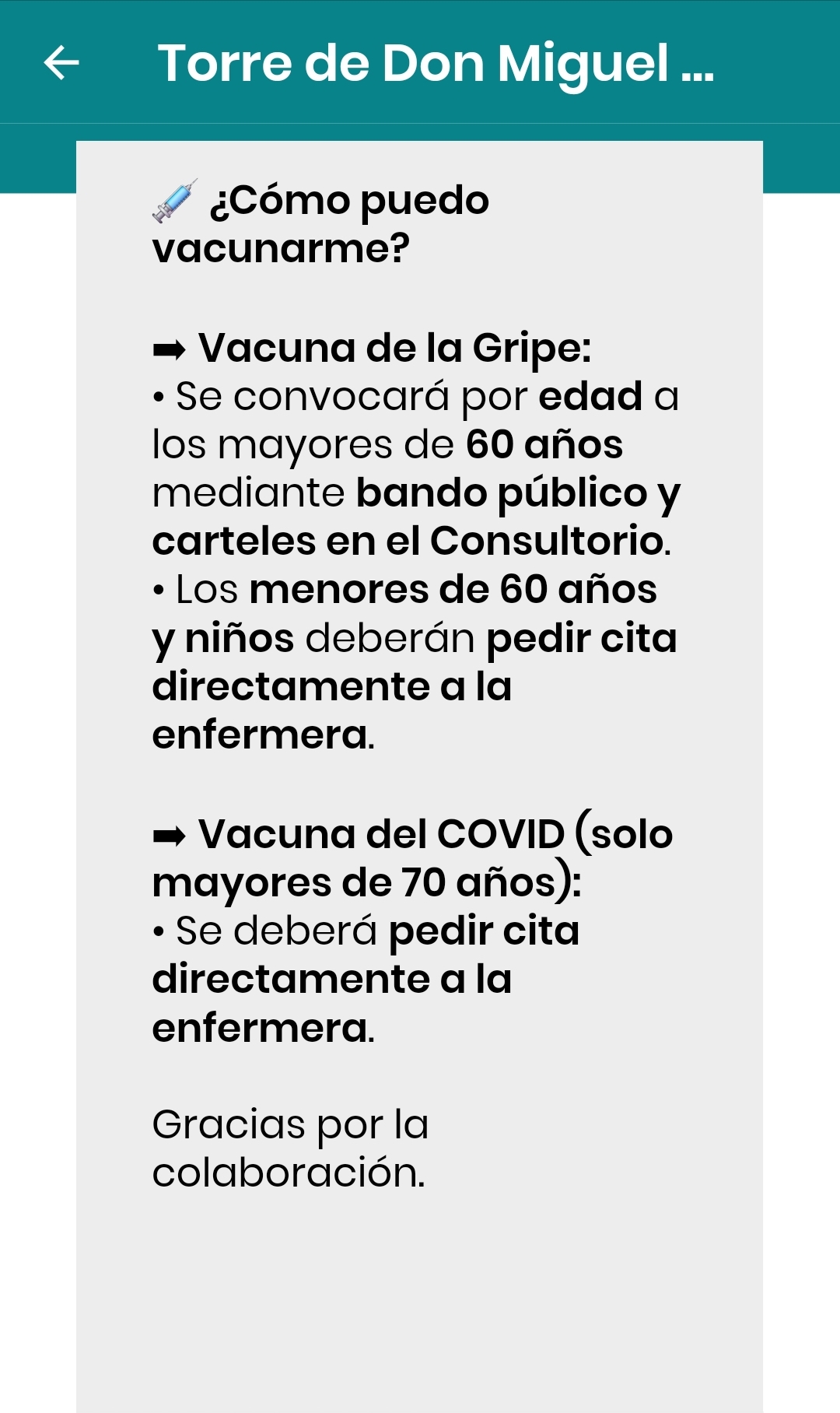 AVISO IMPORTANTESe recuerda que comienza la Campaña de Vacunación de Gripe y COVID.Todas las personas interesadas puedensolicitar cita en el Centro de Salud.