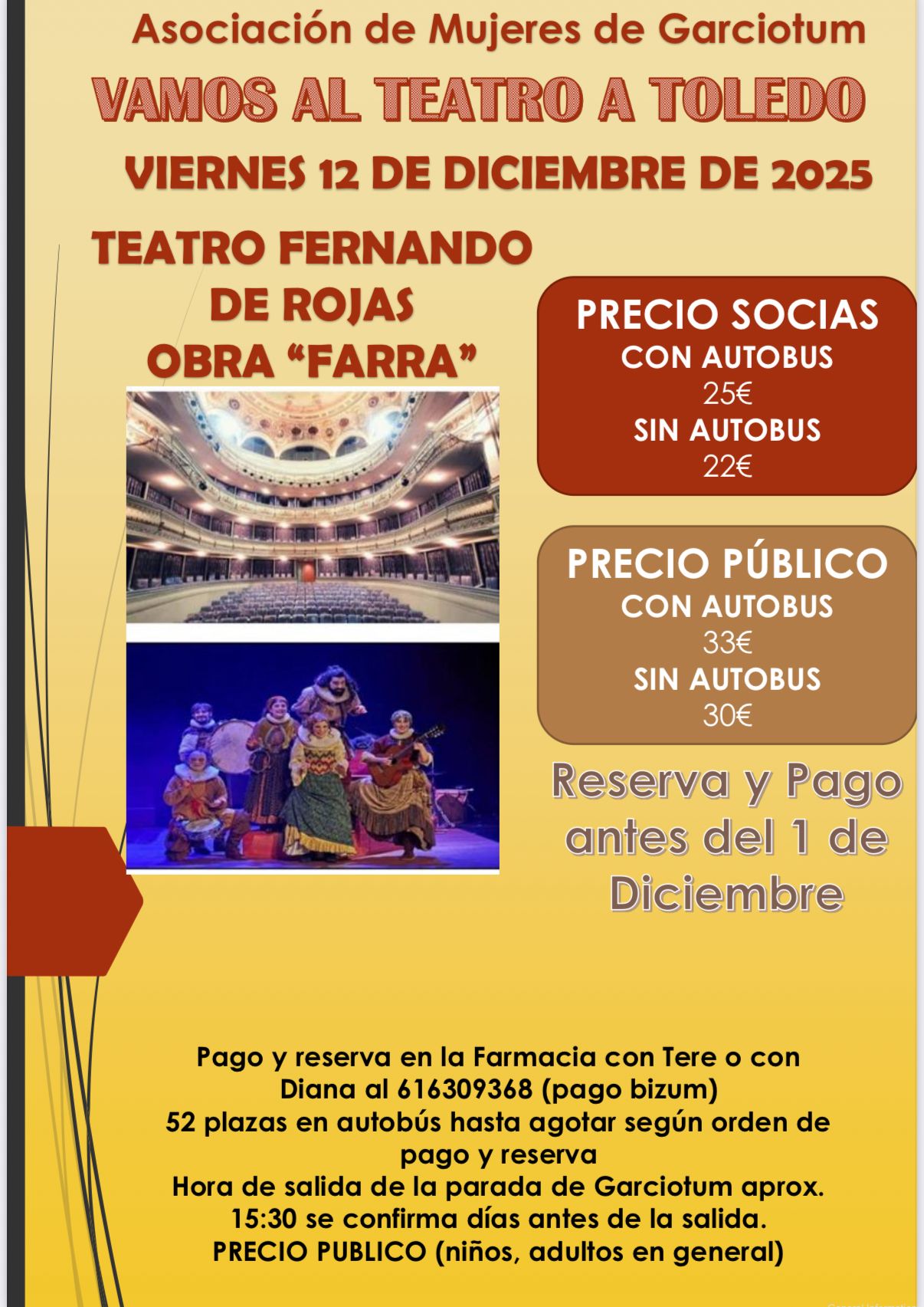 La Asociación de Mujeres organiza una divertida salida al teatro de Rojas, en Toledo, para ver la obra “FARRA”.