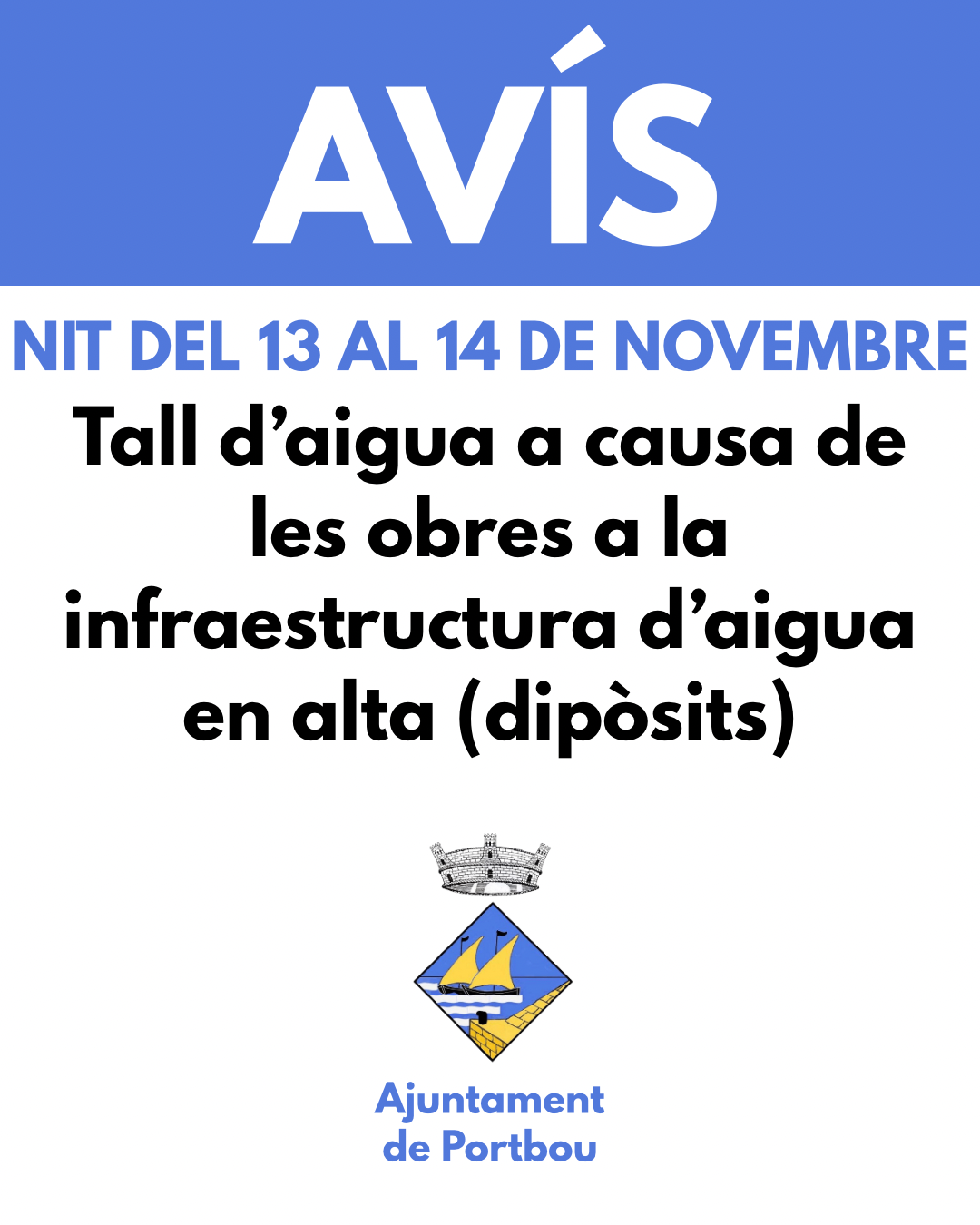 La nit de dijous a divendres, entre les 0h i les 06h hi haurà un tall general d’aigua a causa de les obres a la xarxa en alta (dipòsits)