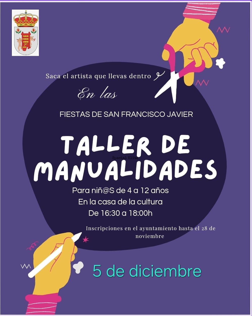 ℹ️ Se informa a las niñas y niños de 4 a 12 años interesados en participar en un taller de manualidades que el taller se celebrará el viernes, 5 de diciembre de 2025, de 16:30 a 18:00 h en la Casa de la Cultura.