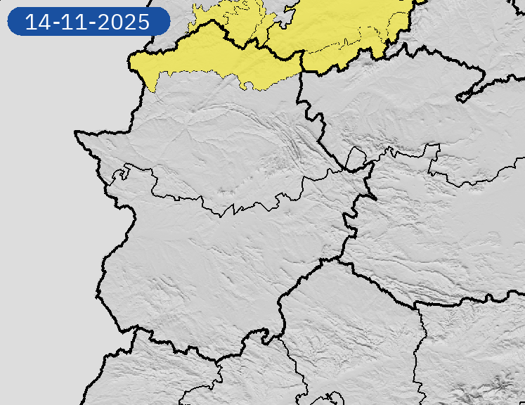 - LLUVIAS: Nivel AMARILLO en la zona de Cáceres Norte, desde las 00:00 horas del 13 de noviembre de 2025 hasta las 00:00 horas del 14 de noviembre de 2025.
