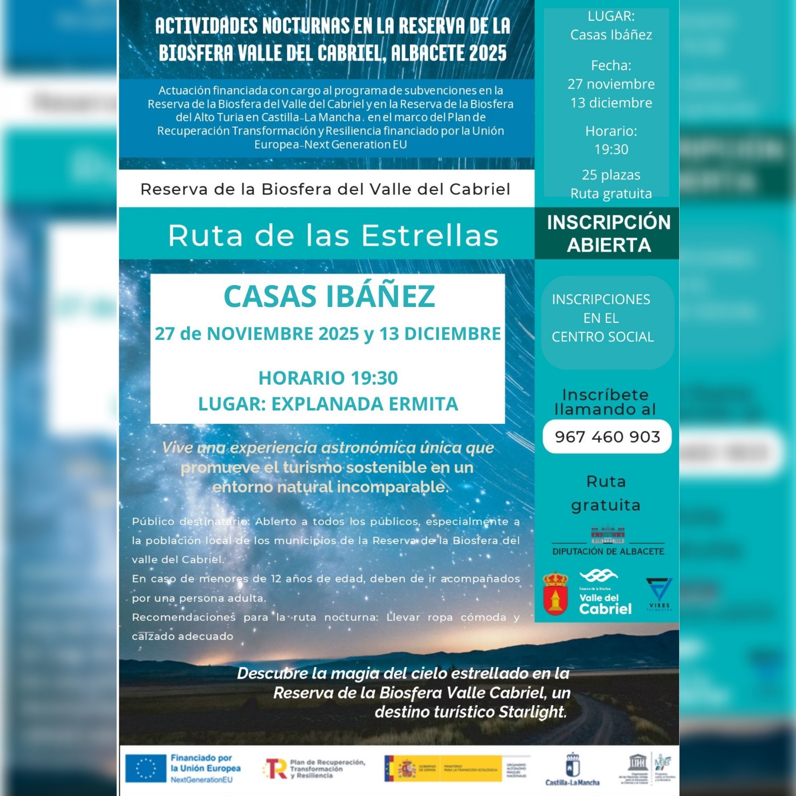 ✨Desde la Diputación de Albacete y el Ayuntamiento de Casas Ibáñez se ha organizado una actividad de observación🔭 astronómica dentro de la Reserva de la Biosfera Valle del Cabriel🏞.