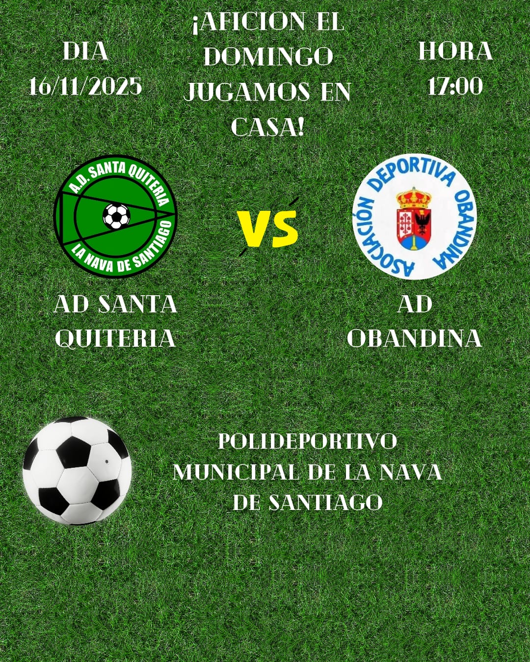 La A.D. Santa Quiteria vuelve al Polideportivo Municipal de La Nava de Santiago para enfrentarse a la A.D. Obandina
