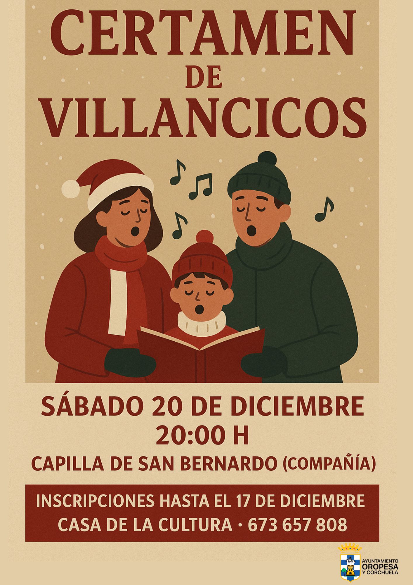 CERTAMEN DE VILLANCICOS 🔔 📅SÁBADO 20 DE DICIEMBRE DE 2025 🕢 20:00h. 💒CAPILLA DE SAN BERNARDO (COMPAÑÍA) INSCRIPCIONES HASTA EL 17 DE DICIEMBRE 🎶 ☎️🕢EN LA CASA DE LA CULTURA 673 657 808