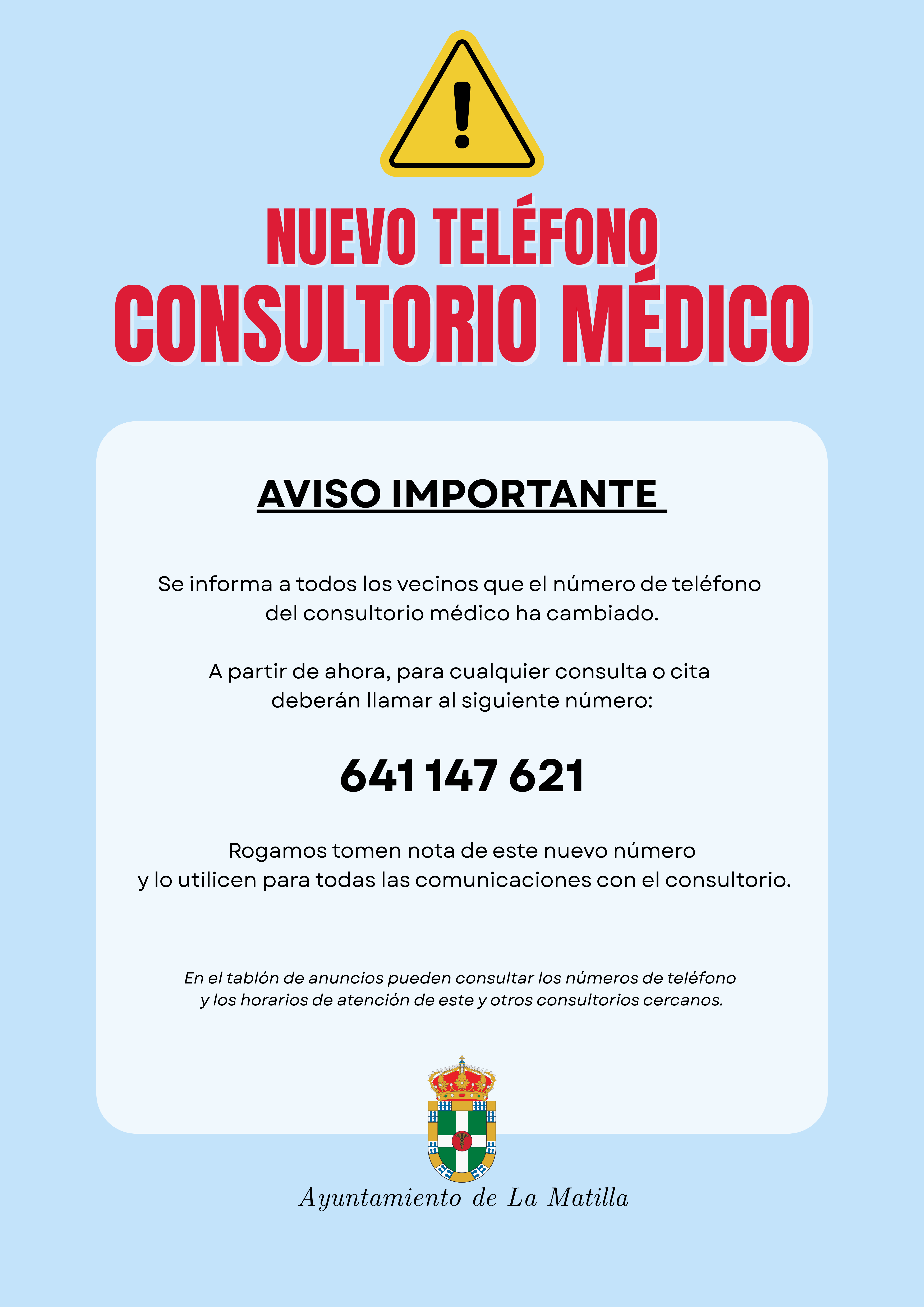 Se informa a todos los vecinos que el número de teléfono del consultorio médico ha cambiado.