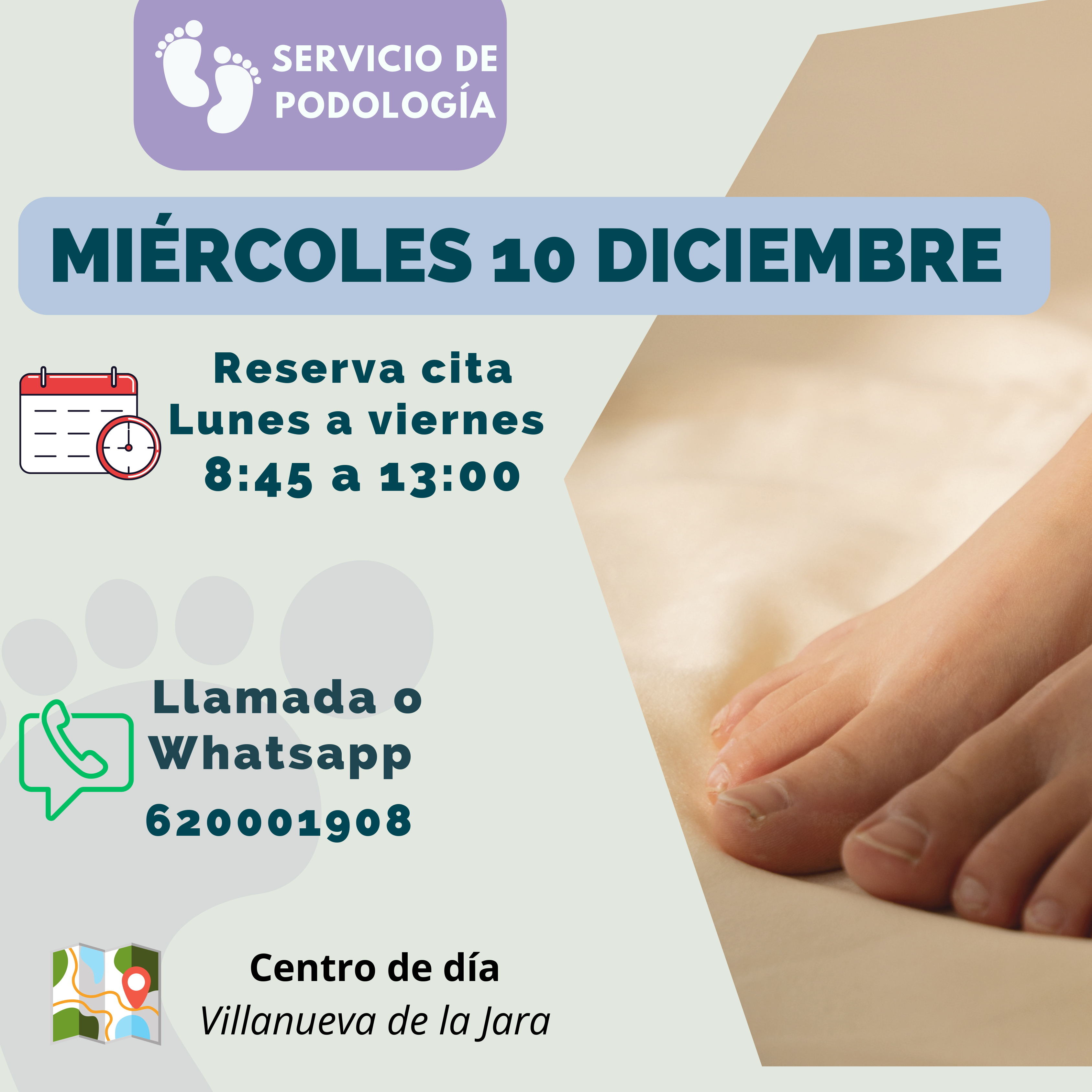 Informamos a todos los vecinos y vecinas de Villanueva de la Jara que ya está disponible una nueva fecha de atención del servicio de podología en el municipio.
